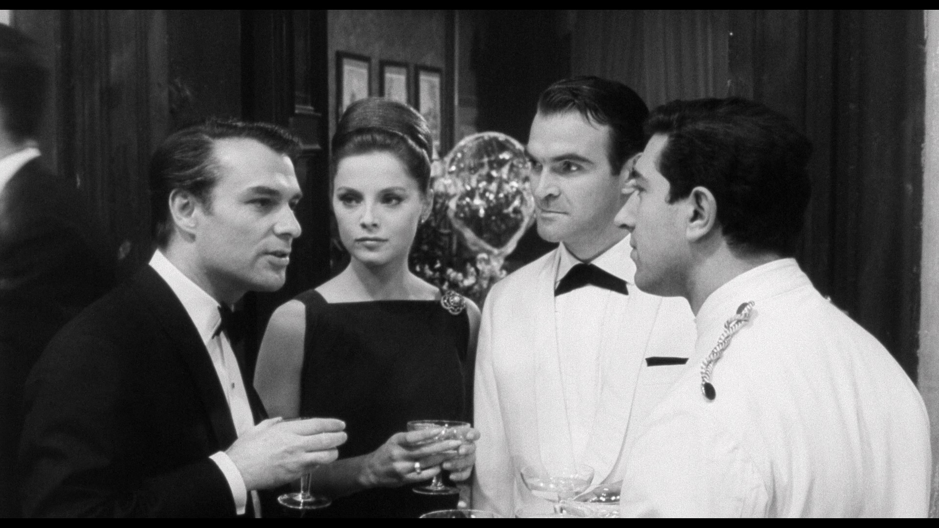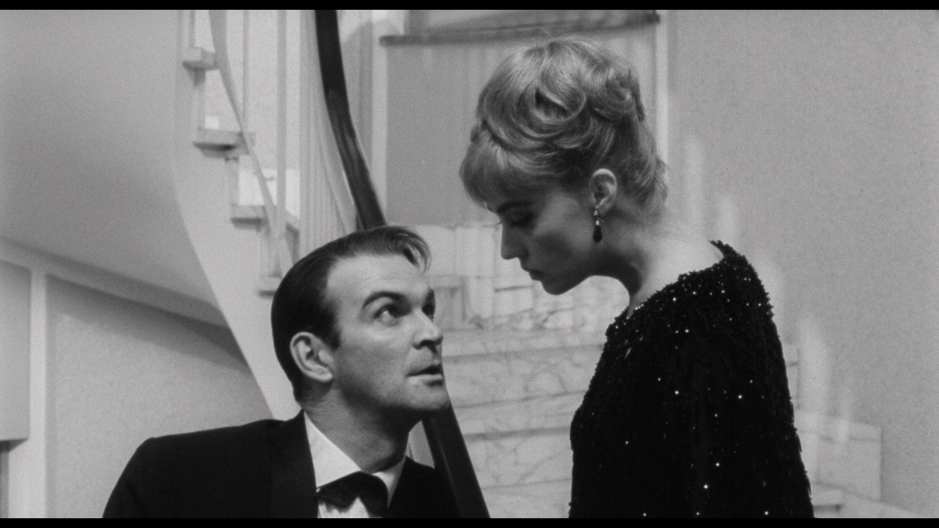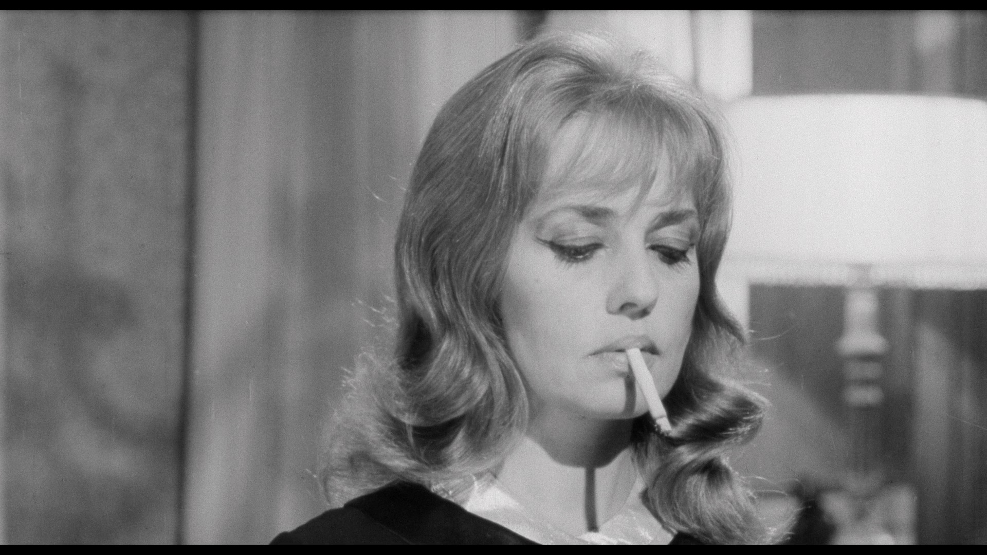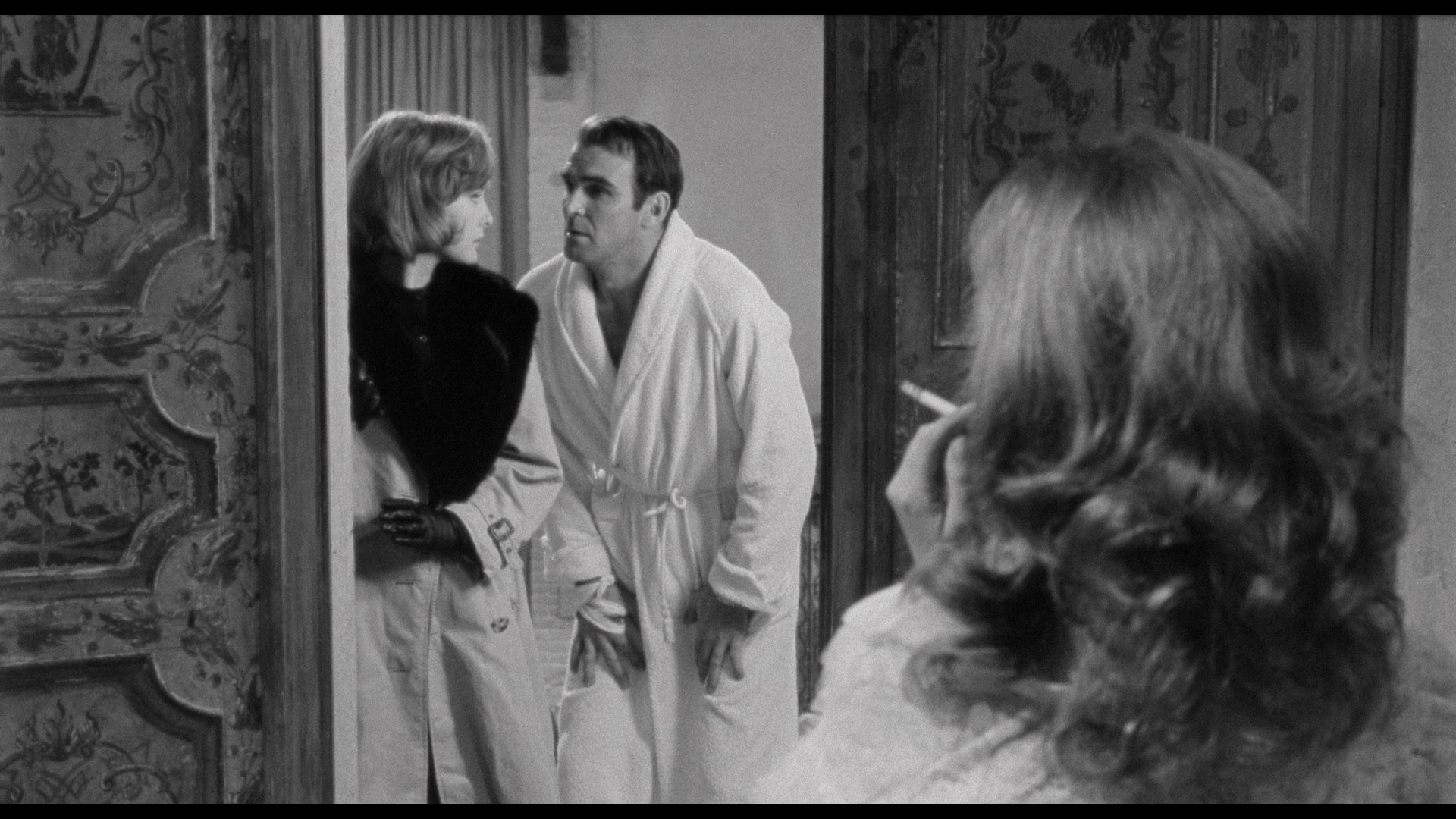 brand new 2K scan of Eye Filmmuseum’s photochemical restoration of the longest known version of the film, obliterating the earlier DVDs and getting us as close as possible to Losey's original cut with what currently survives. (Two brief scenes still have those baked-in Scandinavian-sourced subtitles which are exclusive to that lone remaining source.) You can also watch that version with an extra snippet of dialogue (not in Losey's cut) added back in the final scene, which knocks the running time up by a second and might as well be your initial viewing option. Also included are the most commonly seen theatrical cut (the 109-minute one) as well as an alternate French version, The Devil’s Woman, which comes in a minute shorter but makes several little cosmetic and structural alterations while also explaining why this was known as Eva so often. All of the versions feature optional English SDH subtitles and feature a solid, problem-free English LPCM audio track.