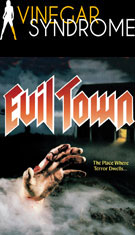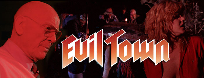 not only seems to have been made on another planet but actually defies the laws of time and space. Among the behemoths in this arena like The Visitor, Dangerous Men, and Troll 2 are any number of other bizarre, brain-scorching gems, and Evil Town absolutely deserves to be included in their company. Begun in 1977, the first gestation of this film was evidently completed under the title God Bless Grandma and Grandpa but never received an official release; it was then reworked into something known as Dr. Shagetz, God Damn Dr. Shagetz, and/or God Bless Dr. Shagetz, which was then left on the cinematic scrap heap to rot away despite the involvement of directors like Curtis Hanson and producer Peter S. Traynor (Death Game). Never one to let a project run smoothly, producer Mardi Rustam, who had already fired Tobe Hooper (temporarily) from Eaten Alive and added his own scenes, had managed to somehow get a significant theatrical release for his bizarre sci-fi / slasher / sex hybrid, Evils of the Night, which he prepared in two distinctly different versions. Apparently he saw a similar opportunity with the remnants of Shagetz and, taking inspiration from several scenes in Evils, added enough new subplots and nudity to create a finished product in 1985. However, the public wasn't treated to the fruits of his labors until 1987 when Trans World issued it on VHS, complete with misleading packaging promoting it as a zombie film. The actual