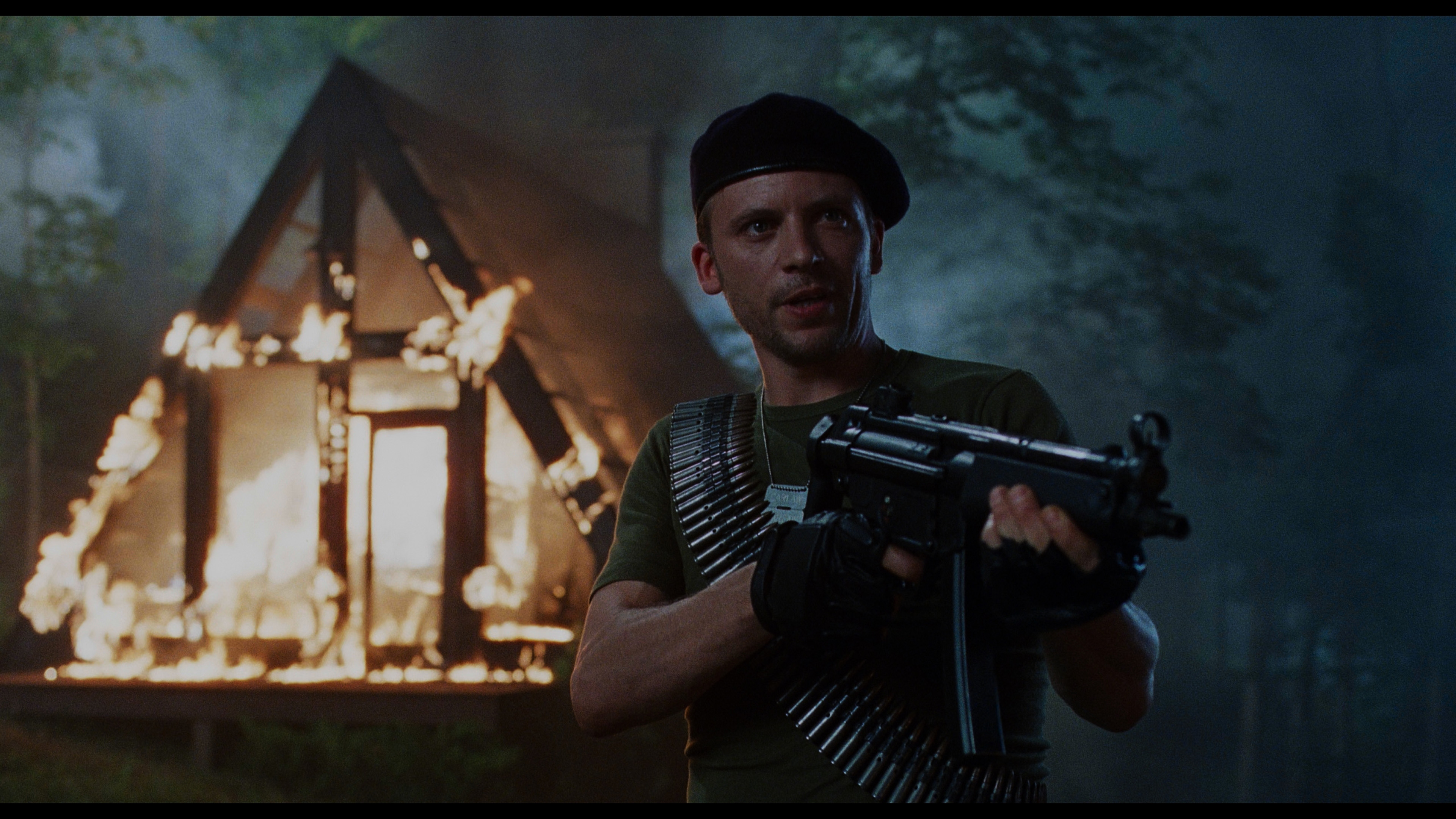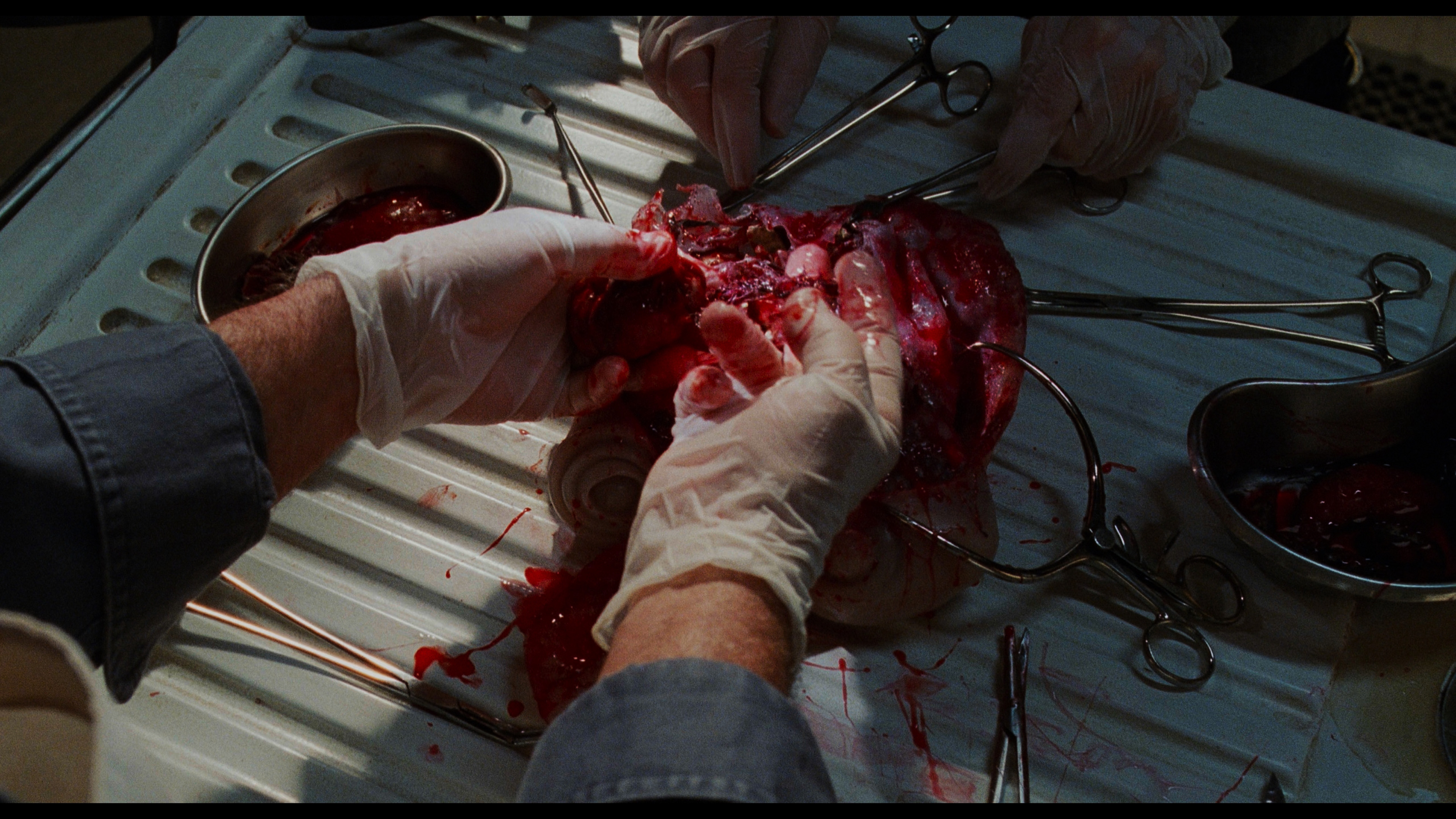 In 2018, 101 Films selected eXistenZ as one of the launch titles in its dual-format Black Label series, with the first 3,000 units featuring a slipcase and exclusive booklet (in this case two essays, "Enemy of Reality: David Cronenberg’s eXistenZ" by Alex Morris and "Of Fabrics and Flesh: An interview with Denise Cronenberg" by Phillip Escott). The transfer appearsto be almost identical to the German one, if just a sliver brighter in spots; likewise, both LPCM 5.1 and 2.0 English options are included with optional English subtitles. Both sound great as usual, though the 2.0 feels more authentic to the way it sounded in theaters at the time.