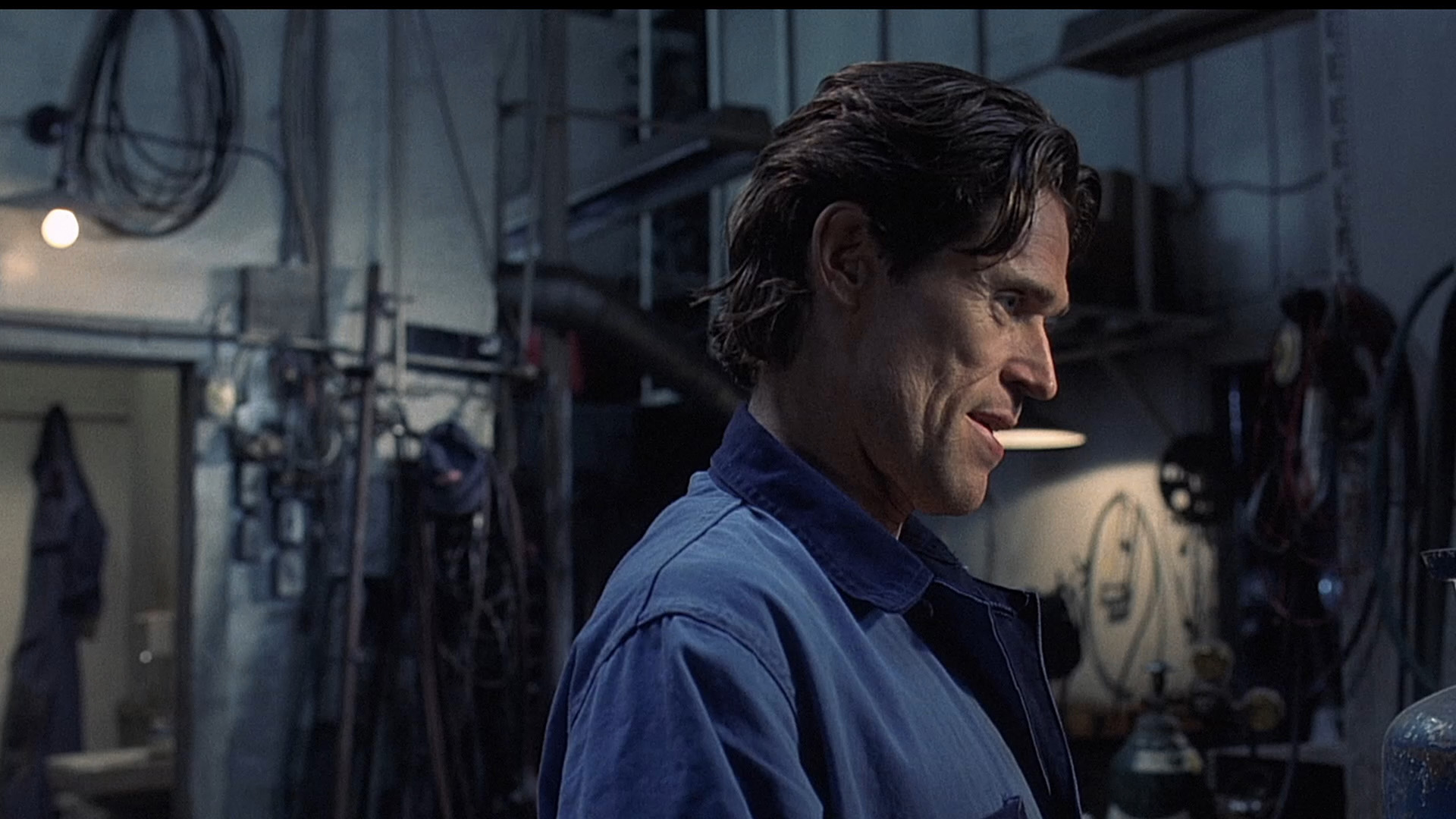 In 2024, Vinegar Syndrome gave Cronenberg's film its first worthy U.S. release as a dual-format 4K UHD and Blu-ray set (both standard retail and a limited edition that sold out almost immediately, featuring a 40-page book with essays by Justin LaLiberty and Jon Dieringer). Featuring a new 4K scan from the 35mm interpositive, it's a very obvious upgrade over past releases with more image info visible, more accurate 1.85:1 framing, and a more robust and evocative color scheme that outclasses how this looked in theaters. The UHD's HDR is particularly impressive, bringing out a wide array of colors in the darker scenes that were flattened out completely before (especially the hotel room scenes). The DTS-HD MA 5.1 and 2.0 English tracks both sound excellent with Howard Shore's typically eerie score getting most of the benefit of the multi-channel separation, and optional English SDH subtitles are provided. The Cronenberg, Suschitzky, and Isaac commentary tracks are all ported over here, while a thoughtful new one with film historian Jennifer Moorman takes an analytical approach to the film including aspects of philosophy, the real-life fatwa that inspired the story, the handling of multiple planes of reality, the interplay of violence and intimacy, and the role of gender within the gaming community. In the new "Crafting (un)Reality" (22m14s), art director Tamara Deverell chats about the choices made to bring the film's vision to life with its blurring of the lines between the game worlds and explains how her own extensive art background played a role in her career choice."Frankenstein Syndrome” (9m24s) is a new piece with make-up effects artist Stephan Dupuis exploring how his early love of monster movies informed his work and what he brought to conjuring up some of the grotesque imagery in the film, including that memorable Chinese restaurant shooting. In "Sticking with Genius" (10m25s), producer Robert Lantos goes into his affinity for staying loyal to genuine creative innovators like Cronenberg and the working relationship they enjoyed while he was in the process of selling his company Alliance to form the new Serendipity. Finally the new "The Art of the Title" (7m) has opening title designer Robert Pilichowski exploring the influence of classic designers like Saul Bass and explaining the concept behind his work on this film, as well as the renaissance in striking title sequences that arose throughout the '90s. Returning here from earlier editions are "Frame by Frame: The Invisible Art of Production Designer Carol Spier," the special effects and promotional featurettes, the trailer, and the EPK interviews with Cronenberg, Law, Leigh, Dafoe, and Isaac. A promotional and behind-the-scenes gallery (3m24s) is also included.
