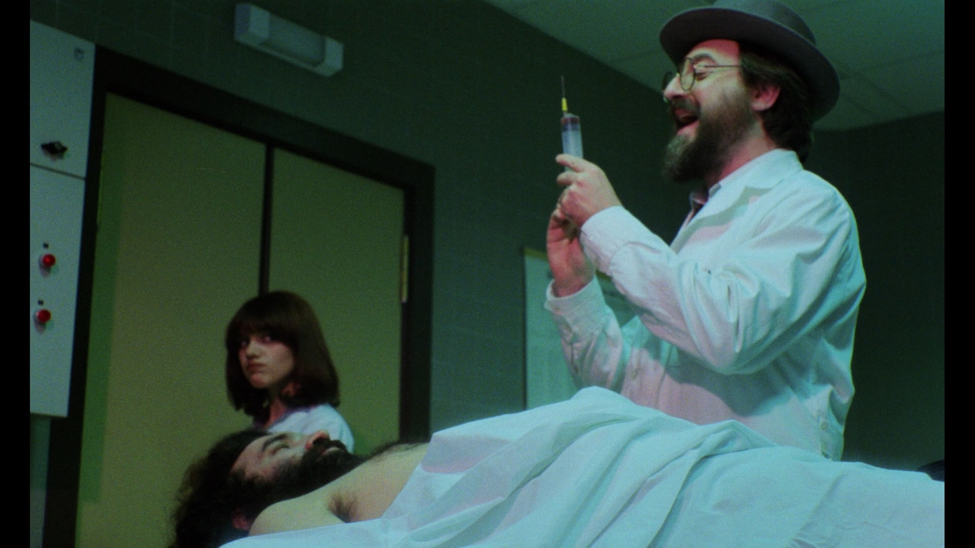 Two years later these films had already reached the point of full self-parody as demonstrated on the same disc with 1983's Morbus, a bonkers sex-and-horror stew that virtually defies description. A white-coated professor is convinced he's about to win the Nobel Prize thanks to his steamy-potioned experiments that could stave off death, all with the aid of his dizzy assistant, for seven months at their mountain lab. Unfortunately it ends up creating a gradual zombie outbreak just when sex worker Anna (Serret) heads into the region with a wealthy trick who gets off on having fairy tales read to him in the car. Anna escapes from a zombie attack and inexplicably wakes up in the home of her pipe-puffing writer friend Juan (Roman Ferré, brother of the director), which drops them smack in the middle of Satanic orgies, lots of nudity, more zombie attacks, dream sequence fake-outs, and a weird "Oriental" henchman lurking around played by beloved genre eccentric Víctor Israel (Horror Express).