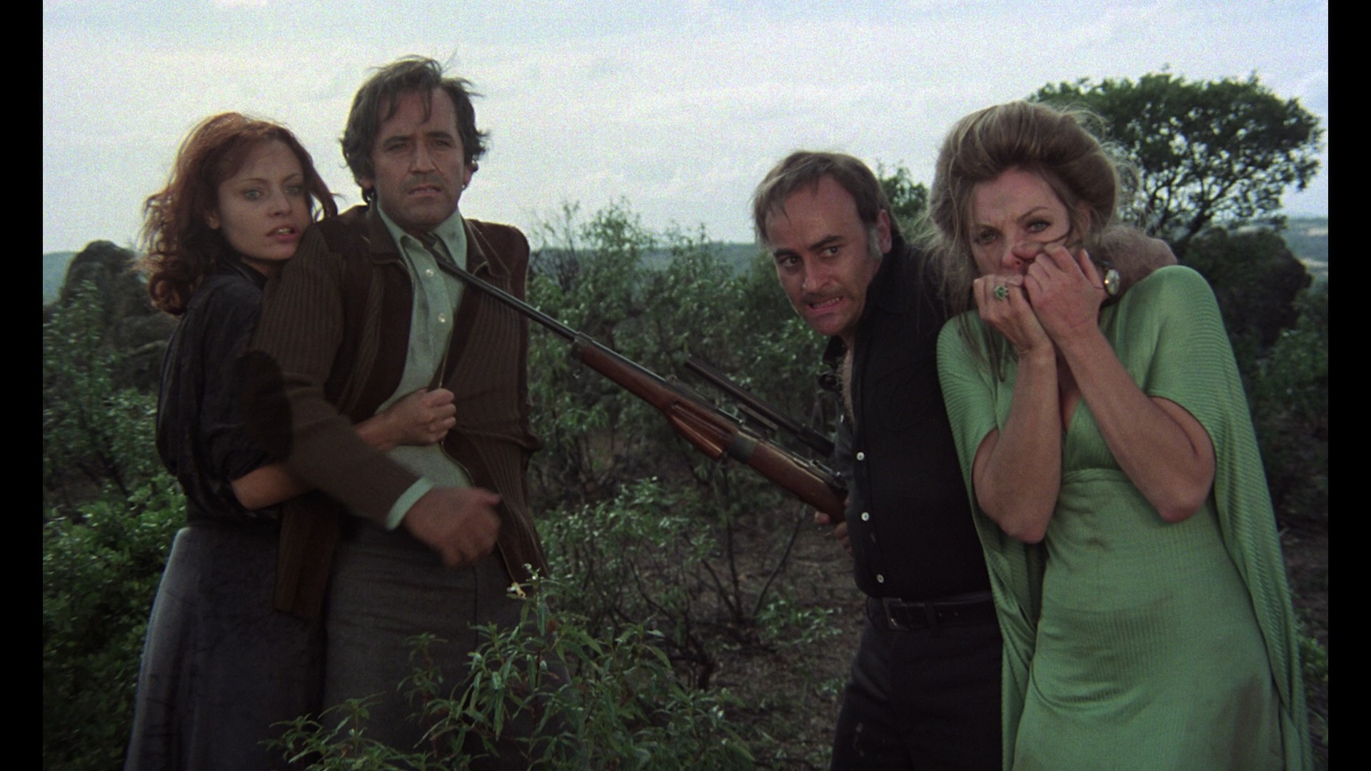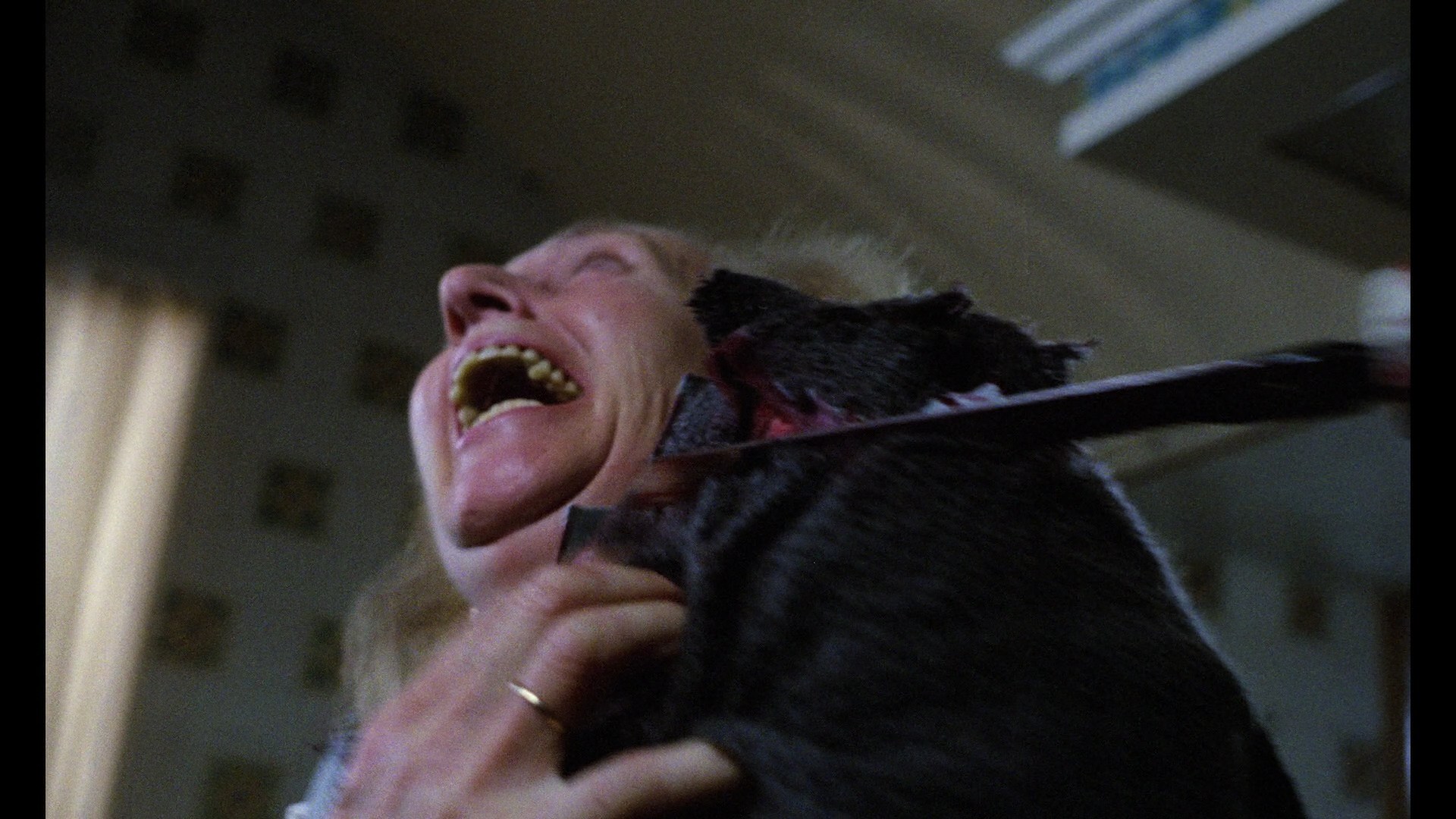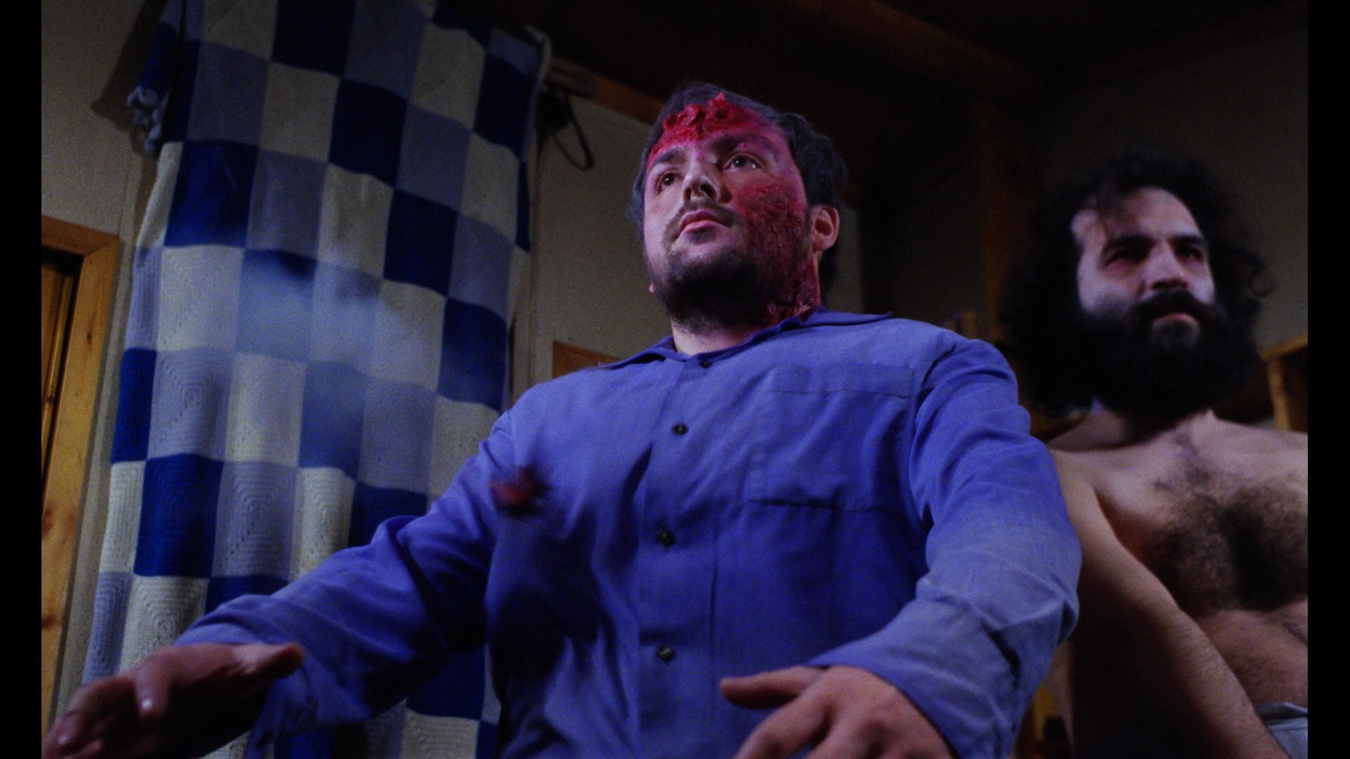 Nearly four years later, Code Red revisited the title for a late 2015 Blu-ray release. Surprisingly, they derived their HD transfer from an entirely different print running 83 minutes, restoring many of the small bits that were damaged before. There's still a sliver of missing frames The People Who Own the Darkbefore the end credits, but it's a massive upgrade all around with far less damage and a good combination of the best aspects of both versions on the DVD edition. There's still some damage, not surprisingly (including a thin intermittent yellow scratch in the first couple of The People Who Own the Darkreels), but the uptick is substantial. The image is also a bit brighter with more detail visible in the darker scenes, which is nice since that's about 80% of the second half of the movie. The brief opening credits are in substantially rougher condition, so don't panic when the film first starts up. The DTS-HD MA mono audio sounds fine given the nature and age of the source, and the theatrical trailer is also included in its usual lo-res glory. The Severin disc presents a new restoration of the film including the U.S. version (framed at 1.85:1) and the much longer Spanish cut, at a more spacious 1.66:1 with considerable extra footage mainly confined to character development in the pre-apocalyptic stretch. It also has a wild psychedelic main title sequence set to "Ode to Joy" (thus explaining the music's reappearance at the end), which will probably split opinions. The presentation is gorgeous, with the restoration used for the bulk of the U.S. cut apart from the exclusive bits like the credits and some extra bird shooting footage added for some reason. An audio commentary with NaschyCasters Rod Barnett and Troy Guinn does a thorough and typically excellent job of providing background about the film, Naschy's participation and work with Klimovsky, the differences between the two versions, and tons more. In "Joking On Set" (9m25s), actor and future Jess Franco mascot Antonio Mayans talks about a funny hiccup in the cast process, a tie to Charlton Heston, a special meaning for the line "Okay, let's go," and the temporary tiff with Naschy he had on this film. In "A Unique Iconography in Spanish Terror" (18m9s), The Sitges Film Festival's Ángel Sala chats about the misleading Spanish title (Ultimeo Deseo), the influence of Night of the Living Dead and The Day of the Triffids, the commercial indifference to Spanish sci-fi, and the lineage of post-nuke films in Spain which took some bizarre turns along the way. The U.S. trailer is also included.