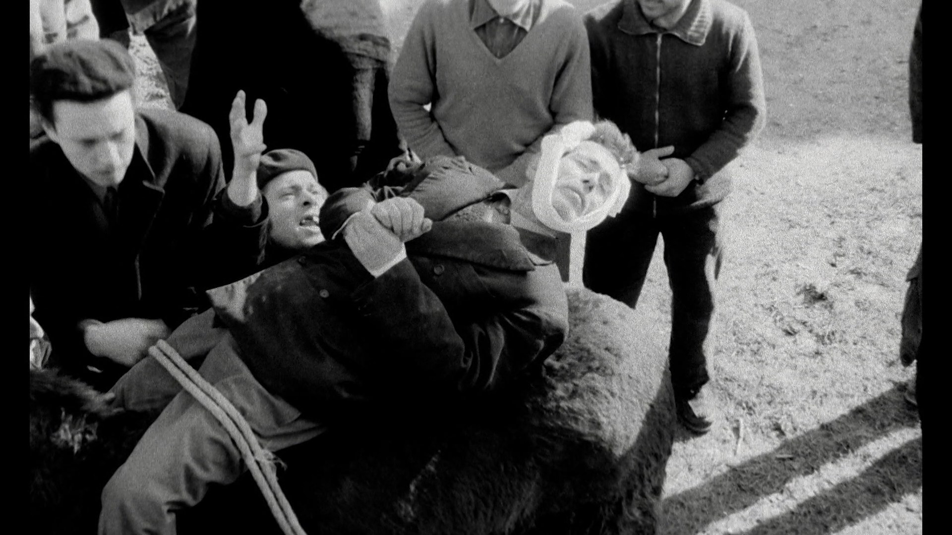 Also on the same disc is the pre-“S” Far from the Trees, a Spanish mondo-style documentary shot in gritty monochrome looking at violent and unusual Spanish rituals around the countryside and in smaller towns. We start off with some groovy footage of young folks shaking their business in a nightclub, after which we see nuns and priests at work, the brutal treatment of bulls and donkeys, and other provincial elements depicted at length without dialogue. Shot around 1963 but stuck in limbo by the government for years since it flew in the face of the positive images of Spain Franco and his cronies wanted to promote, the film is a bit of a challenge to get through at 103 minutes (you might want to save it for later if you’re doing this set in order) but does have some undeniably potent imagery scattered throughout.