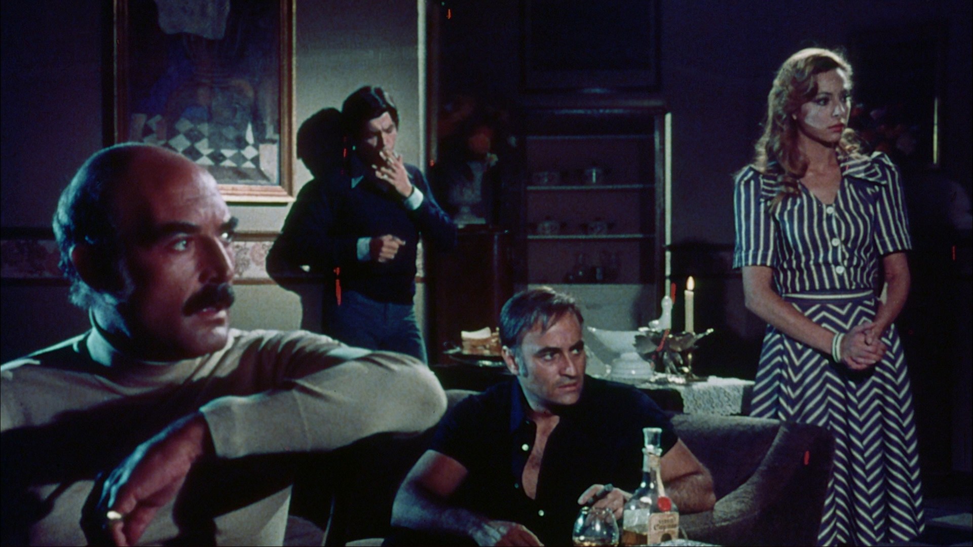 Part of a peculiar subset of Sins of a Nymphoorgy-heavy films around this time kicked off by the successful and surprisingly acclaimed La orgía the previous year from Francesc Bellmunt, this was one of only three films directed by Miguel Madrid who remains most famous for The Killer of Dolls. It's an odd mixture to be sure with the stratospheric amount of nudity in the second half contrasting with the Sins of a Nympho"socially redeeming" dialogue and a moralistic swerve in the final stretch that tends to put off many viewers. Given the sympathies of pretty much everyone involved, this resolution feels like more of a put-on a la the ending of Beyond the Valley of the Dolls, but it's hard to say for sure. The soundtrack patched together from Italian and Spanish library music is great, and if you're looking for a film that represents the libertine side of what was unleashed during this period in Spanish cinema, this one definitely fits the bill. Never available before on home video, it looks excellent here and comes with a crisp Italian DTS-HD MA 2.0 mono track with optional English subtitles. In "I Regret Nothing" (19m8s), assistant director Alejo Loren looks back at the 'S' period which he didn't feel was intending to be all that transgressive, the construction of the sets including the issues with sticking a big fireplace in the middle (which magically disappears Dimorfoearly on), the blocking challenges of having your cast naked for half the movie in cold weather, the inspiration of Salo and the in-production Caligula, and the film's status as a sorta-kinda sequel to Las eróticas vacaciones de Stela. A Spanish trailer is also included.
