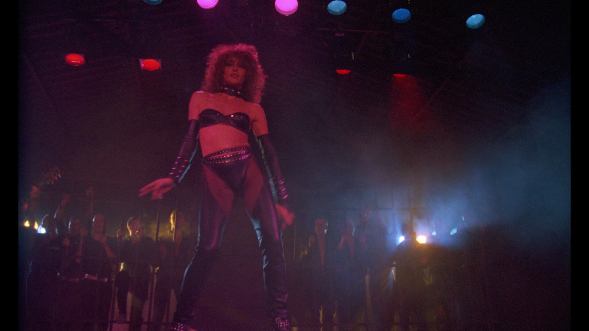 Finally on disc ten we reach the end of the line for "S"-classified films with one of the last to carry that designation, 1984's Poppers, which at least on paper sounds like one of the greatest movies ever made. PoppersThe fact that it features Euro schlock god Eric Falk (who never appears in the film) wielding a serrated knife on the Cruising-style poster also promises transgressive shocks in store, but this was undeniably a product of the MTV era with a stronger focus on pop music, loud clothing, and crazy hair. That's all great fun of course, but keep your expectations in check here. (Nobody does poppers in the film either, for the record.) After a rough night at a club that ended up in manslaughter, band singer Santos (Ortiz) returns to the fold only to find out that the dead boy's father and his corrupt, upper crust buddies (including The Bell from Hell's Mayo, a nice bit of bookending here) have a nefarious plan in store. To say more would spoil the fun, but the fact Poppersthat the rich guys hang around a manor where a horse gives live birth on the floor should give you an idea that things aren't going to be pretty. Double crosses and a revenge plot come into play with Santos' club pals, but none of that interferes with the music performances including a crazy S&M dance number you have to see to believe.