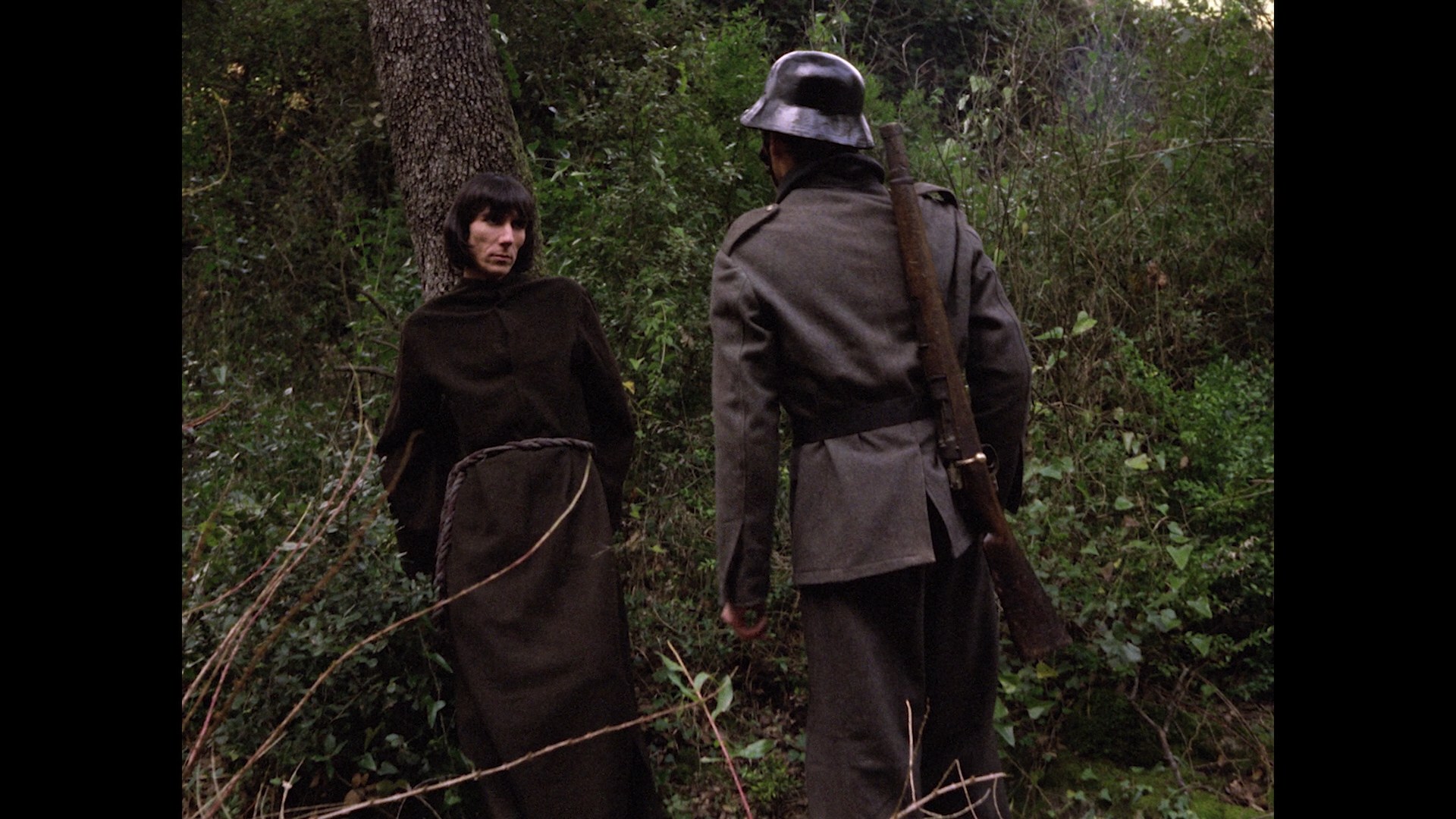 DimorfoFrom there we go to a fascinating riff on Teorema with Dimorfo, directed by and starring the enigmatic Rodjara who apparently went on to work in TV animation. During World War II, a Jewish hermit in monk garb, Salomon (played by our filmmaker), ends up in the crosshairs of Nazi soldiers after he helps a naked, dying man in the woods. He ends up finding refuge at a farmhouse where he ignites sexually voracious behavior in the residents including married couple Aleja (Fontsa), who's heavily closeted and miserable, and frustrated Ana (Valer), as well as the elderly Rebeca (Caracuel), a suspiciously masculine old grandmother type who shaves. An obviously personal and peculiar passion project, this one also uses a library music soundtrack (in this case Stelvio Cipriani's The Killer Is On the Phone!) Dimorfoand has an off-kilter vibe that could make this a top or least favorite title with equal validity for anyone going through this set. The plot turns can be truly surprising at times, and the spacey performances actually coalesce into something fascinating the further you delve into this little mystery Dimorfoproject.