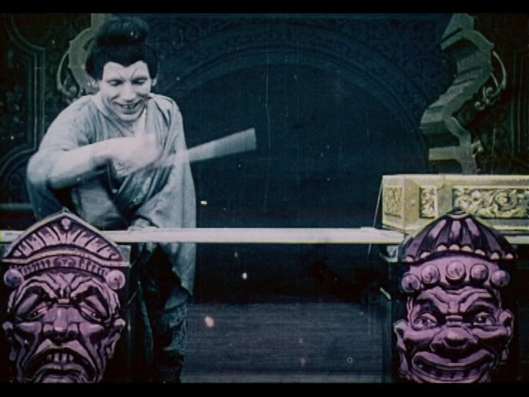 Considering the age and history of these films, the BFI DVD is a welcome treat for almost all of them. Only a tiny handful are taken from black and white prints, as most of them have the original color tinting and look pretty great. The constant barrage of wild, stylized hues is an intense experience after a few minutes, and it's a bit surprising that someone in the late '60s didn't think to stitch some of these together into a feature, slap on some psychedelic music, and market it to teens looking for another state of consciousness. The shorts have soundtracks composed by a variety of different Touch artists, some of whom have appeared on other BFI releases, including Philip Jeck, Fennesz, Chris Watson, Jana Winderen, Marcus Davidson, Leif Elggren, Sarah Nicholls, Maia Urstad, BJ Nilsen, Sohrab, and the London Snorkelling Team, among others. The disc also features a handful of additional shorts from other studios: "Au pays de l'or" ("In the Land of the Gold Mines"), a vignette about dwarves hoarding gold underground much to the surprise of an interloping maiden; " Georges Méliès' eerie 11-minute adaptation of the macabre "Bluebeard' fairy tale, complete with an avant garde score by SAVX; and a British 1922 take on "Little Red Riding Hood" from Anson Dyer. "La danse du diable" also features multiple score options for a string of very different viewing experiences. The liner notes booklet is especially useful here as Bryony Dixon contributes a thorough essay about the history of these films and their cultural influences, while Mike Harding offers a write up called "Scoring the Past" about the process of creating accompaniment for these films. Each film also gets a brief written set of notes which help identify the recurring filmmakers, producers, and visual motifs running through multiple titles. Perhaps the main essay sums the entire fascinating disc best with a few choice final words: "Very pretty - and a bit weird."