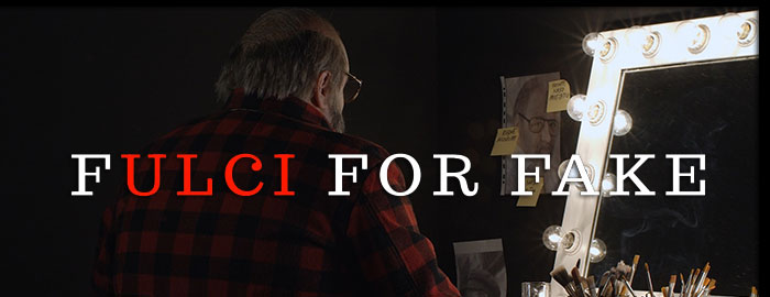featurettes about Lucio Fulci over the years along with lots of archival interview footage, but nothing else out there is quite like Fulci for Fake. We've heard many times about the seeming contradiction between Fulci's gruff treatment of some actors and respectful consideration of others, but a really up close and personal snapshot of personality can be found here with a balance of his surviving family and those who worked with him. Adding to the unique nature of the project, it's also constructed around the conceit of an actor (Nicola Nocella) preparing to portray Fulci in a biopic, first seen going through makeup to look like the maestro's appearance in A Cat in the Brain. The jury still seems to be out as to whether that idea really works, but with the title itself betraying a debt to Orson Welles' playful and deliberately deceptive quasi-documentary F for Fake, the interplay between illusion and reality is something that reflects Fulci's life as well with some many seemingly conflicting opinions about him and the effects of his well-publicized health problems later in life.