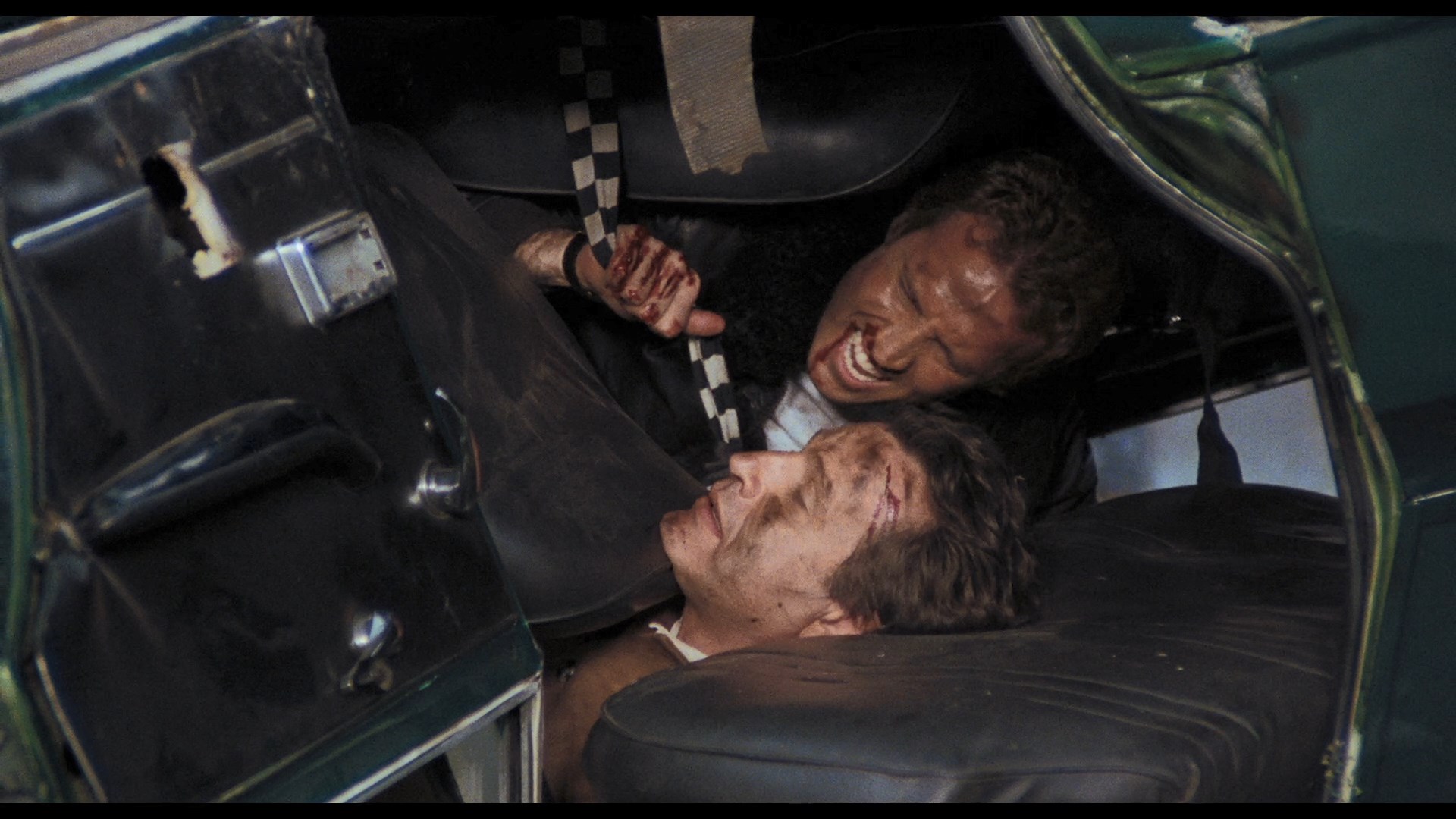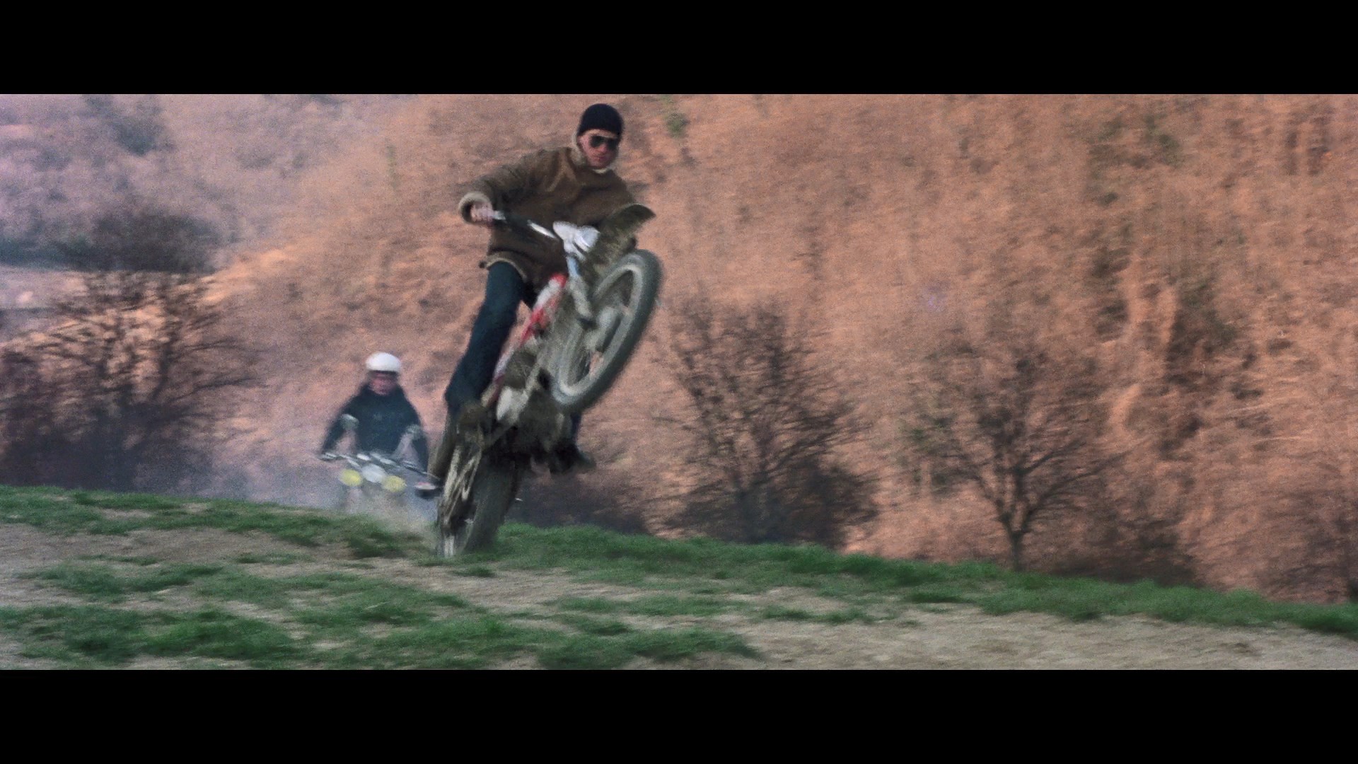 Poliziotto SprintGiven that there's only a slim video history for this film including an Italian DVD with no English-friendly options, Poliziotto Sprintit should go without saying that the Blu-rays are the best way by far to experience this underrated chunk of poliziottesco fun. The transfer first debuted from Camera Obscura and retained for the Arrow edition looks excellent and has a nice grain structure throughout, while colors and detail are very healthy and impressive. Italian and German audio options are provided (LPCM mono) on the Camera Obscura with optional English or German subtitles; given that this film was actually shot in Italian with the actors appearing to all provide their own voices, that's definitely the way to watch it. The Arrow manages to pull off a nice coup by featuring not only the Italian subtitled track but adding the very rare English dub as well, which is utterly ridiculous and great to finally behold. The one big video extra here is "Faster Than a Bullet" (19m43s) with film historian Roberto Curti chatting about Merli's career at the time (and the familiarity of his mustache), the unique characteristics of this film and its main character, the screeching tires heard when young audiences got out of seeing this film in theaters, and the general car chase craze at the time epitomized by Smokey and the Bandit. A gallery of 28 stills and posters is also included in the Camera Obscura (with a more modest three posters in the Arrow one), whose slipcase / digipak packaging features an insert booklet with an essay by Christian Kessler, "A Song of Junk and Sheet Metal," about the film's place in the poliziotteschi canon.
