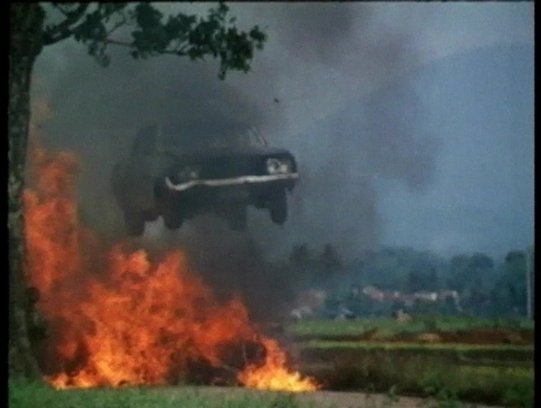 caffeine-addled 12-year-old. There's literally never a dull moment as it keeps escalating to greater heights of action lunacy, complete with wonderfully inappropriate dubbing (especially from the peasants and bad guys) and a parade of stunts no sane person would ever attempt now. (The car vs. train gag is priceless, and the helicopter feat at the end is absolutely one for the history books.) Mitchum makes for an appropriately stoic hero tossing off icy farewells to all of his victims, and the Indonesian setting gives it a nice local flavor different from the usual urban warfare options.
