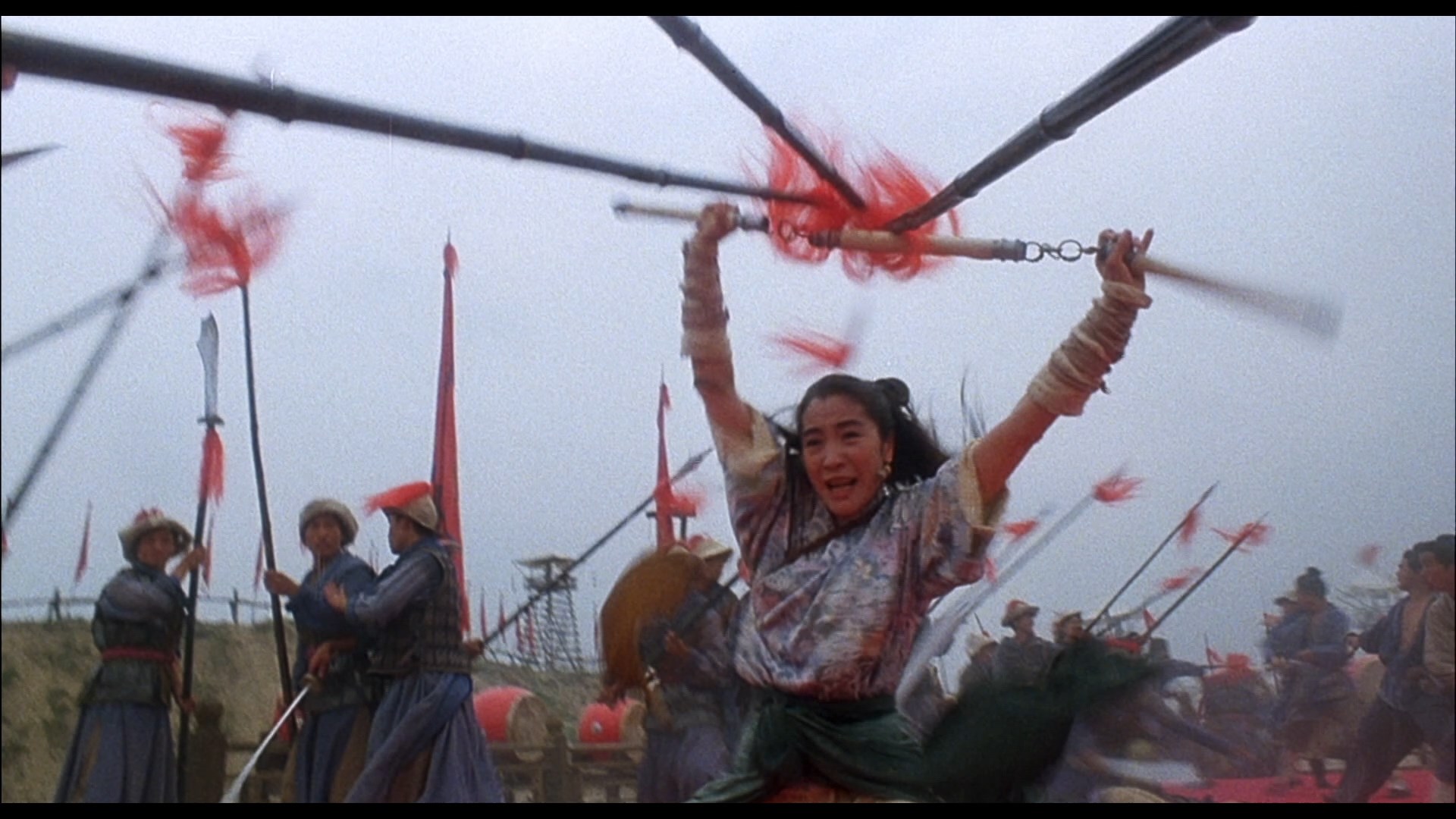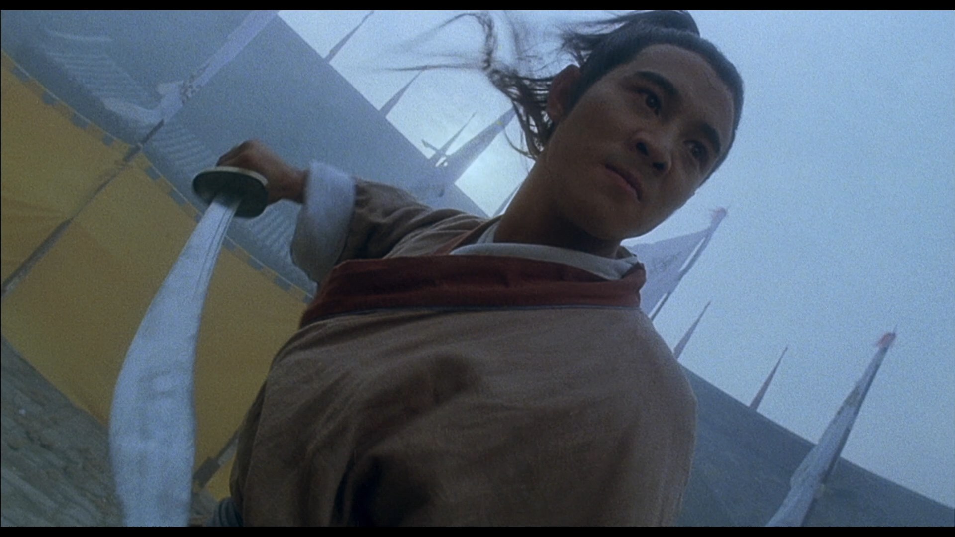 '90s films, the Golden Harvest production eschews the panoramic widescreen spectacle of its predecessors in favor of a tighter, more intimate aesthetic relying on tight close-ups and faster action cutting. It's a style that always suited Li well, and it's no wonder this was another feather in his cap at the height of his local popularity. The version released in theaters and on VHS by Miramax's Dimension arm was edited, not surprisingly, but the intact cut was eventually restored for U.S. audiences in 2008 for a Dragon Dynasty (followed by a Blu-ray upgrade). That edition featured lossy Dolby Digital Cantonese 5.1 and 2.0 tracks plus the English 5.1 dub, with optional English-translated or English SDH subtitles. There was also a surprising amount of source damage left in the transfer, which otherwise looked okay. Extras on that release include a solo audio commentary by the now long-disgraced Bey Logan, plus the trailer and several worthwhile featurettes: "Nemesis" (20m18s) with actor Chin Siu-ho talking about '90s martial arts training and working with Li; "The Birthplace of Tai Chi" (14m58s), a lively video tour of Chen Village; and "Meditations on the Master" (13m42s) "Twin Warriors" (14m34s) with critic Elvis Mitchell and another now-shunned figure, Brett Ratner, discussing the work of hugely influential work of Woo-Ping and the impact of the Hong Kong work by Li and Yeoh. The 2022 Ronin Flix Blu-ray retains all of the video extras (and understandably drops the commentary), while adding a nice incentive with drastically superior DTS-HD MA options for the Cantonese 5.1 and 2.0 and English tracks. The scan itself is the same, though the egregious damage present in the earlier release has been removed for a smoother viewing experience. It's also matted at the theatrical aspect ratio of 1.85:1 versus the slightly opened-up 1.78:1 seen on the earlier disc.