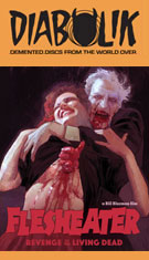 classic Night of the Living Dead is a more daunting task than you might expect, with major players like George A. Romero and John Russo alone responsible for many connected films frequently utilizing variations of the same Pittsburgh cast and crew members. Bill Hinzman, most famous as the first zombie we see in that trailblazing classic when he shuffles through that graveyard and attacks Judith O'Dea's Barbara, frequently pops up throughout this saga as well including cameos in other Romero films through Knightriders. He also directed the Russo-penned The Majorettes and reprised his role for Russo's outrageously ill-advised "30th anniversary edition" of the original film, but his most ambitious project was easily starring in, directing, writing, producing, and editing 1988's 16mm zombie opus, FleshEater (or to go by its full title, FleshEater: Revenge of the Living Dead).