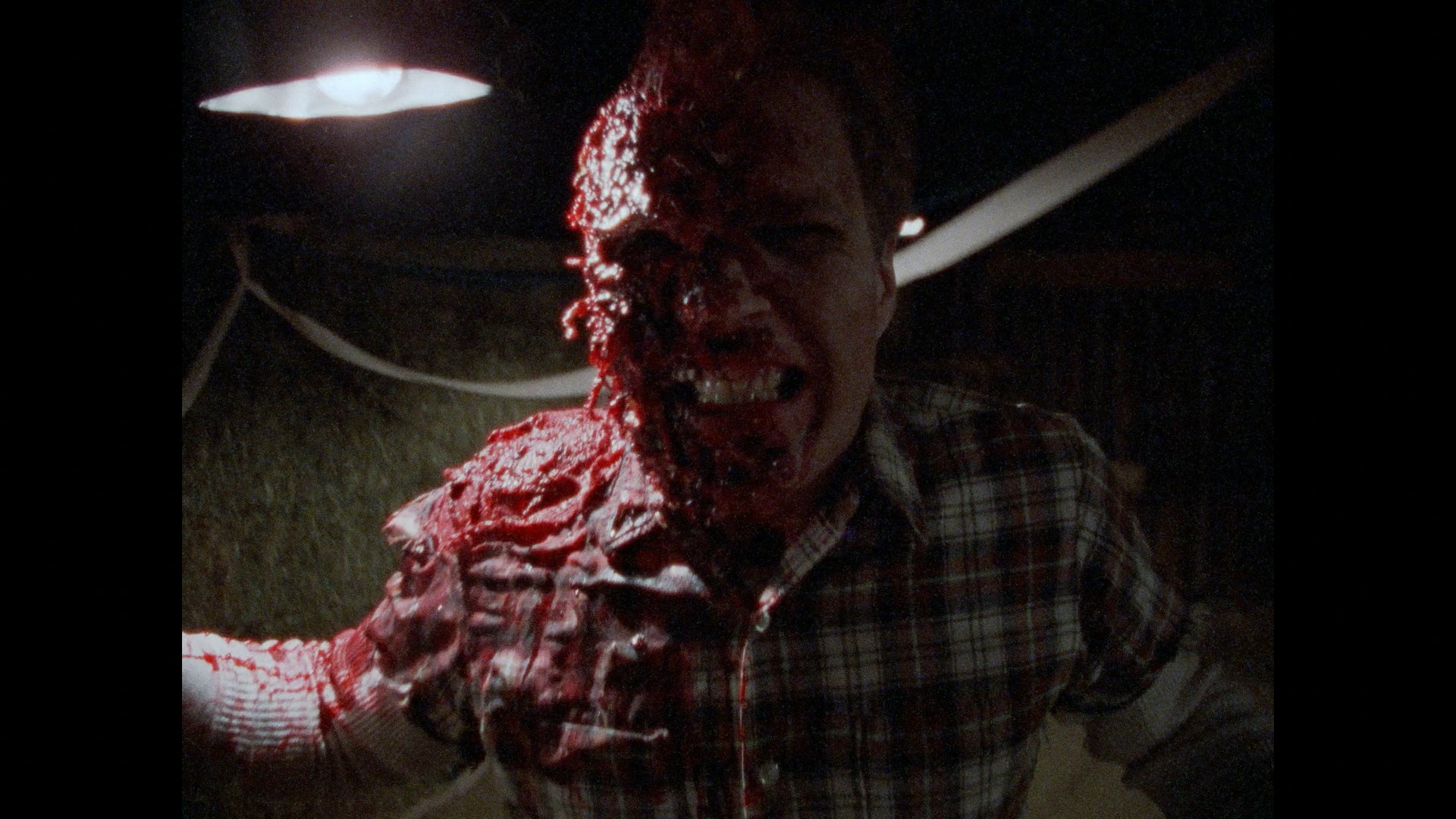 highlights, a photo gallery, and a trailer. That version got outpaced considerably in 2022 with Vinegar Syndrome's UHD and Blu-ray edition featuring a new 4K scan from the 16mm original camera negative, with the UHD sweetening the deal with HDR and a shockingly good transfer if you've seen this one before. The low-budget veneer is still here, of course, but the detail levels are excellent and the colors really pop off the screen in all their autumn-hued glory. The DTS-HD MA English 2.0 mono track is in crisp condition as well and features optional English SDH subtitles. Both formats also come with a new commentary track with cinematographer Simon Manses, composer Erica Portnoy, and producer Andrew Sands, talking about using the same equipment from Romero's recently rediscovered The Amusement Park, Hinzman's talents and history going back through the Latent Image days in Pittsburgh including his work as a photographer, the family nature of the project, the location scouting, and tons more.