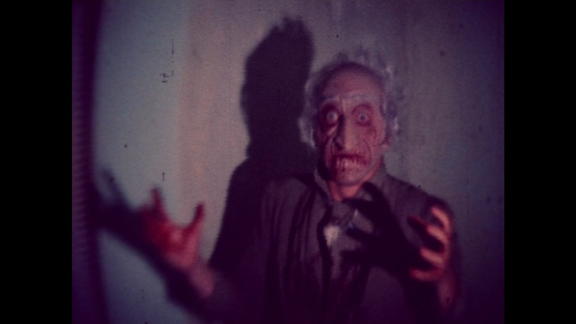 in 1857 about a new arrival at a pastoral convalescence home run by the mysterious Dr. Stan Afoson. Over the course of the following year, escalating nightmares proliferate within the mansion's walls as a diabolical secret comes to light. An ambitious, sprawling period piece soaked in atmosphere complete with Andy Milligan-worthy costumes, this is a truly unique stab at Gothic horror on a big scale and a minuscule budget with lots of grisly charm if you just sit back and roll with the long running time. It gets extremely gruesome, too, especially once you hit the 70-minute mark and all the sacrifices and zombie attacks kick in. There isn't really any dialogue either here per se, just lengthy diary narration with lines like "These foundations are rooted in the magma of hell." Also, the last five minutes are wild. The silent 1981 short Du sang sur la neige ("Blood on the Snow," 8m38s) delivers exactly that, a parade of monster masks and robes in a snowy forest as they hunt down and attack their latest victim. Also silent is 1980's Le vampire contre attaque ("The Vampire Strikes Back," 16m34s), which is sourced from video here and depicts a woman's afternoon memorial visit to a cemetery taking a scary turn through the woods. Finally 1977's Le refuge des maudits ("The Refuge of the Damned," 38m46s) is a very rough, scrappy silent short, again with lots of monster masks, in which a zombie shambles over to a house where a Dr. Frankenstein type and his assistant are