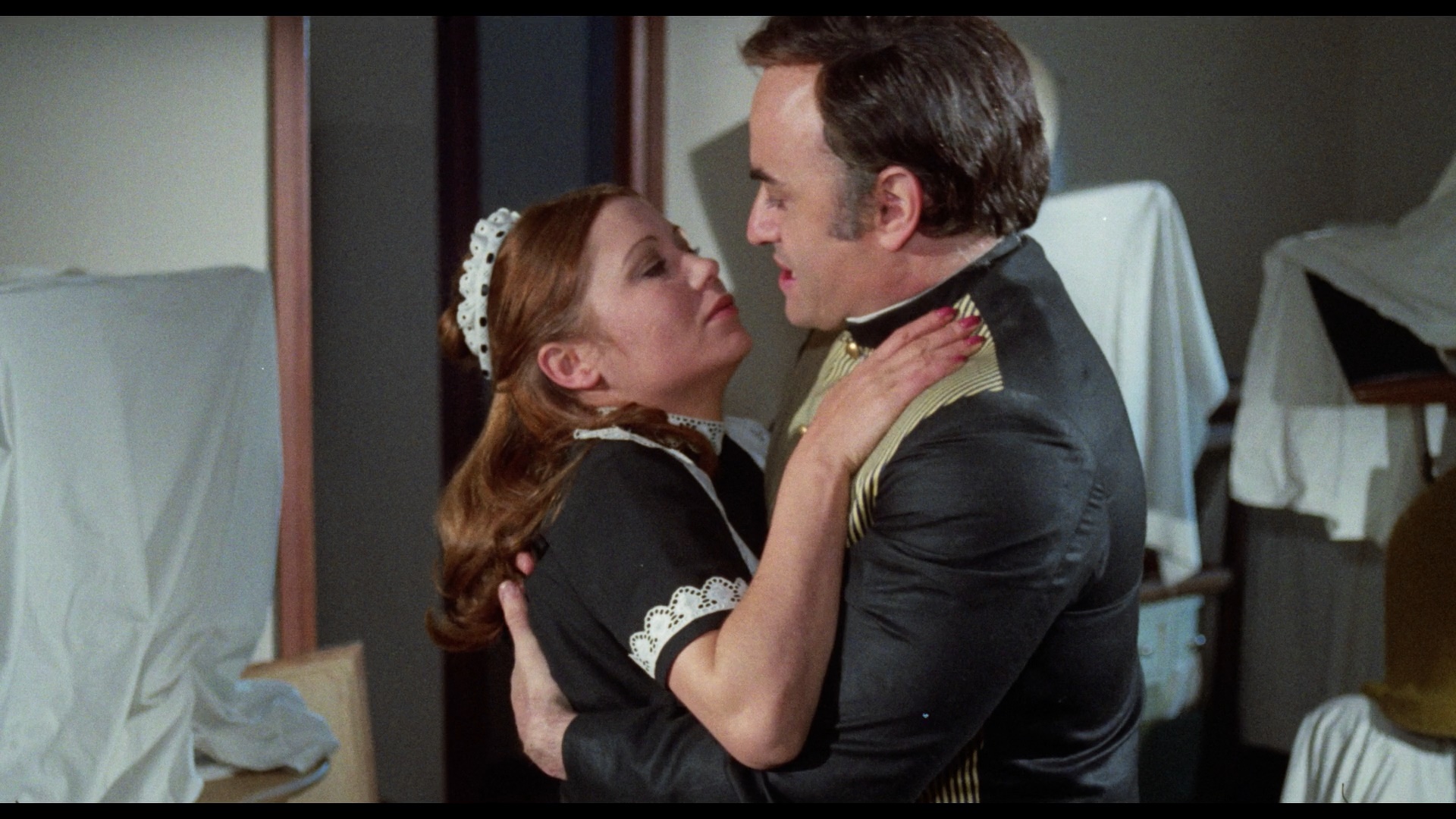 Buoyed by a very fun, very '70s score by Alfonso Santisteban (The Killer of Dolls) that earned a well deserved soundtrack release paired up with Horror Rises from the Tomb, this is a smooth, sunny, and diverting thriller that takes its time to really get going but offers Traumaplenty of pleasures along the way. The real kick here is seeing so many familiar faces tossed together including the obligatory Jack Taylor (Female Vampire and tons of others), the legendary Paul Naschy in a small but important role as a valet-gardener-mechanic who takes out the guests' mode of escape, Cannibal Apocalypse's Ramiro Oliveros, Cauldron of TraumaBlood's Dyanik Zurakowska, Tepepa's Paloma Cela, Pieces' May Heatherly, and two actors who would become crucial in the early films of Pedro Almodóvar, Carmen Maura and Eusebio Poncela (hot off of Cannibal Man). The fact that the film is ostensibly (and very unconvincingly) set in England puts this in the same company as films like The Weekend Murders and the Edgar Wallace cycle, which of course is also part of the charm if you're familiar with the era. Despite its pedigree and entertainment value though, this film never received English-language distribution of any kind and only hit DVD once anywhere in the world as a Spanish-only release in 2008 from Filmax. Needless to say, the presentation here is going to be a treat for many as it looks excellent as well with natural film grain and extremely eye-pleasing colors throughout. Again some minor damage can be seen when opticals are involved like the opening credits, but that's to be expected. No issues with the DTS-HD MA Spanish mono track either. Diabolique's Kat Ellinger provides an enthusiastic new audio commentary that's very much in line with her Spanish horror track for Vinegar Syndrome's Secta Siniestra, as she notes that the sparse production info out there means she gets to contextualize this in the broader picture of the giallo, bourgeois mindsets, and Spanish cinema in general. That means you get some fun intersections here (like calling Andreu the Spanish George Hilton), and of course, it wouldn't be a Kat commentary without a wee detour into Gothic territory. Her reading into the whole "nymphomaniac" stigma here is pretty great, too. The disc also features the heftiest gallery of the bunch with a nice batch of lobby cards.