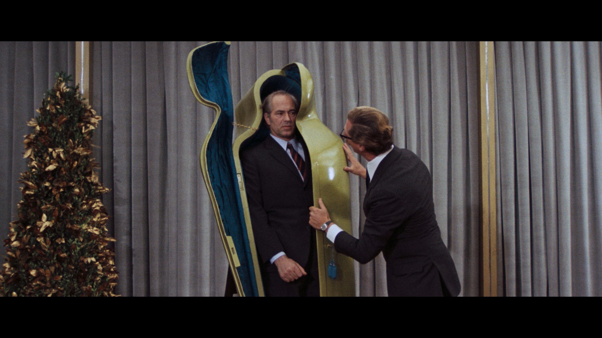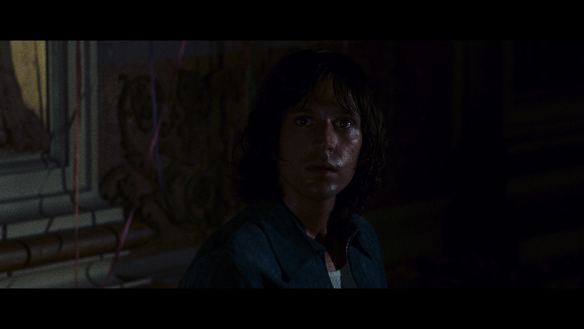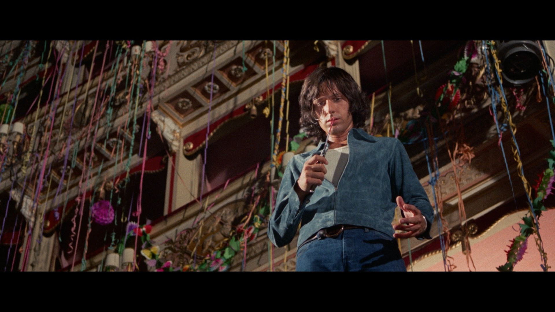 DTS-HD MA 2.0 mono options with English SDH or English translated subtitles; of course, in its complete version the English track still reverts to subtitled Italian for the extra footage in the climax. The English track finally sounds excellent all the way through with no distortion issues. It's also worth noting that the opening and closing titles (plus the killer's notes) are taken from the negative material for the English-language version, so at long last you can see "You have been watching Four Flies on Grey Velvet" in pristine quality. The transfer itself looks staggering, with the UHD in particular glowing with the HDR bringing out some gorgeous colors like the deep blues of Brandon's shirts to the many gradations of darkness in the central house. Also the color timing has been corrected for the cemetery sequence, which now gradually goes from late afternoon to nightfall as intended. (See the third frame grab comparison below.) The UHD and first Blu-ray feature an audio commentary by Troy Howarth and yours truly on the director's cut (so no evaluation of that here) along with the Italian and U.S. theatrical trailers. The first Blu-ray also contains two featurettes: "Lord of the Flies" (28m12s), with Argento recalling the autobiographical elements of the project, its effect on his marriage at the time, his good rapport with Brandon, and his approach to the giallo at the time that he would briefly try to veer