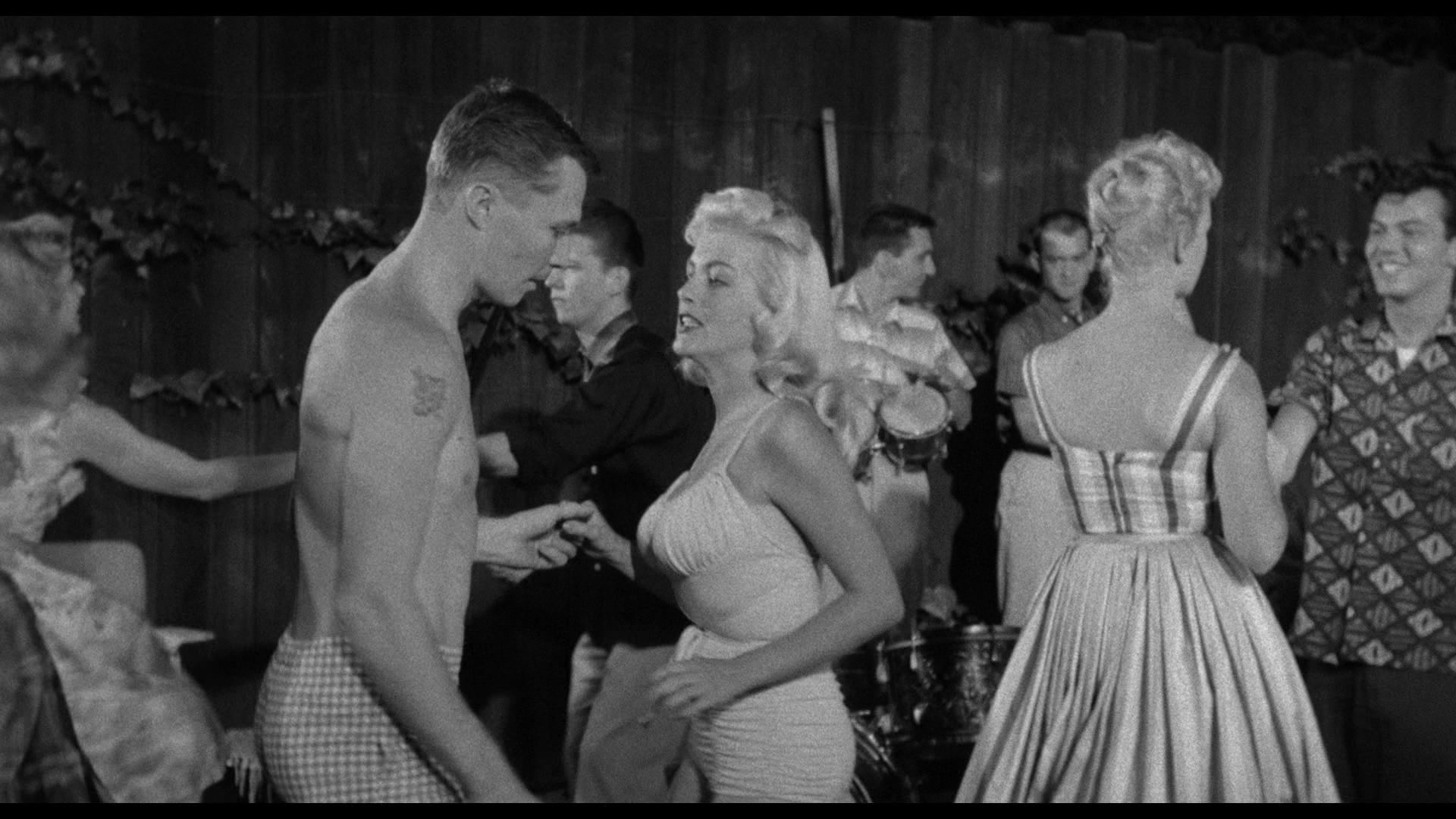 includes the theatrical trailer and an image gallery. The composition issues are thankfully fixed in the 2021 Blu-ray and DVD editions from The Film Detective, which also looks brighter and more detailed throughout. The DTS-HD MA 2.0 English mono track is also in great shape, with a lossy Dolby Digital track thrown on as well (along with English and Spanish subtitles options). A new audio commentary by Tom Weaver (credited to Jason A Ney on the menu for some reason) follows his standard template of incorporating soundbites from the likes of Ashley and monster kids Larry Blamire and Steve Cronenberg, placing it all in context within the context of Cunha's fast-paced career around this time, Astor's releasing methods, backgrounds on the actors, and the origins of the project. Weaver also provides the Cunha-tastic liner notes essay, too. "Richard E. Cunha: Filmmaker of the Unknown" (36m) features some great archival VHS footage of Cunha in his '80s Oceanside video store, chatting about his life from his enlisting in the Air Corps while living in Hawaii and going through his drive-in movie career during the atomic monster golden age, including memories of the "difficult" Irish McCalla. "John Ashley: Man from the B's" (10m15s) is an appraisal of the teen movie star by C. Courtney Joyner, covering the transition from AIP teen star to legend of Filipino horror and fantasy films and successful TV producer including The A-Team.The Film Detective (Blu-ray)