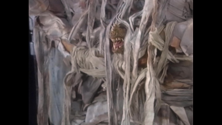 walk" (even though it killed his back) and chats about the makeup creation, the "work in progress" script, the plan to market this in Asia, and the sheer fun of the filmmaking process. Then "It Wasn't Me" (10m24s) features Lack (who also handled FX artist duties) explains how he came up with some of the makeup appliances and had to work with some of the actors' more distinctive facial features, not to mention how he met his future (and now ex-) wife during the shoot