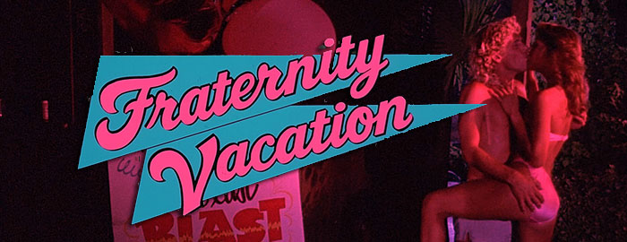 fans than the usual teen sex comedy, Fraternity Vacation was New World's contribution to the scene in 1985 alongside such competitors as Once Bitten, Private Resort, Weird Science, Just One of the Guys, and Porky's Revenge. Like all of those, it went on to become a cable TV mainstay for a couple of years but gained a great deal of notoriety for its cast including a soon to be famous Tim Robbins (who had a small role in the same year's The Sure Thing) and Stephen Geoffreys and Amanda Bearse, both of whom starred in Fright Night later the same year. That film's composer, Brad Fiedel, also performs duties here for a very synth-laden soundtrack also peppered with lots of Bananrama songs. On top of that you get Britt Ekland as a bemused barmaid, John Vernon as a jailer who says "Rapists make my flesh crawl," Frightmare's Nita Talbot, the tragic Charles Rocket as a nightclub DJ, Inferno's Leigh McCloskey, and most spectacularly, a scene with Re-Animator's Barbara Crampton and Bride of Re-Animator's Kathleen Kinmont that earned this a place in the nudity hall of fame.