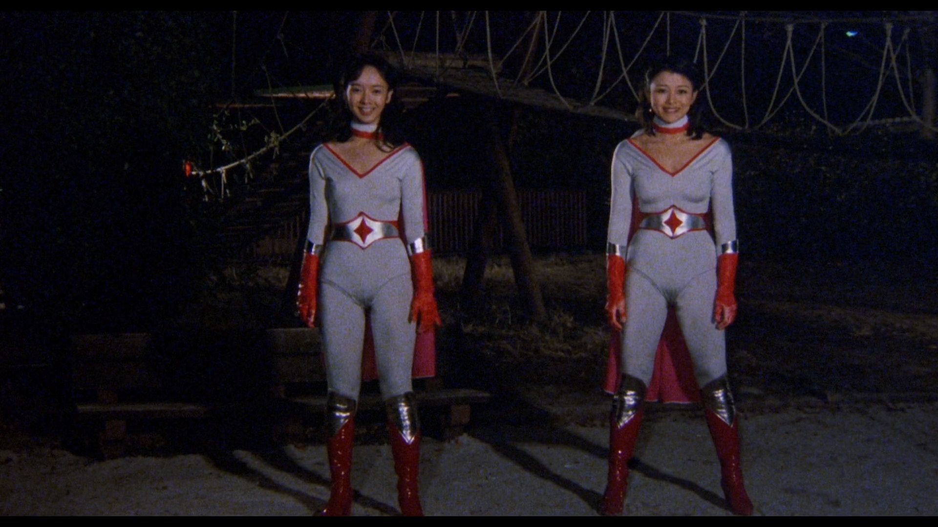 original film footage faring quite well when it isn't overlaid with those video effects. The Japanese and English tracks are here of course with optional English subtitles, and Richard Pusateri provides an informed audio commentary trying to parse out exactly how this patchwork production came to be. Again you get a Ragone intro (6m5s) about the musical and Sid & Marty Krofft vibe of the project, as well as the colorful other careers of our three superwomen from pop music to female wrestling, plus two alternate English credits (16mm and VHS), the Japanese and English trailers, and an image gallery (7m50s).