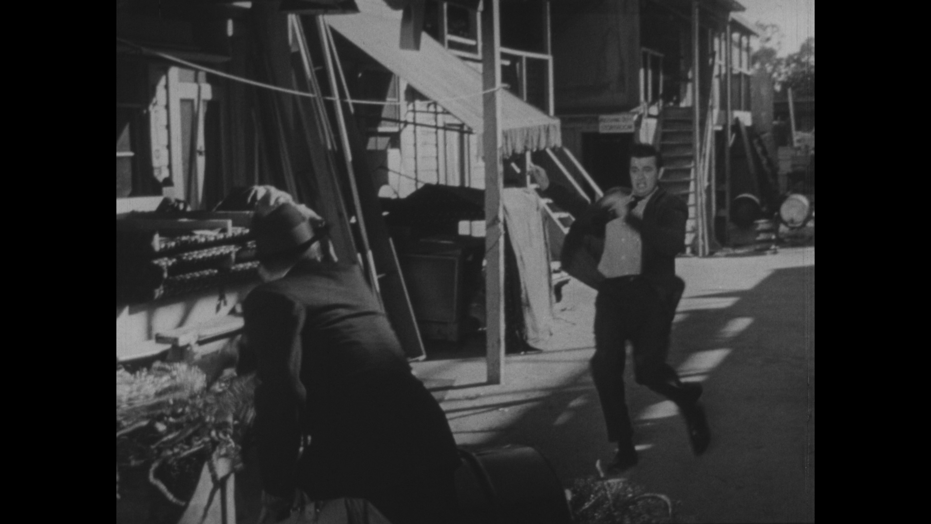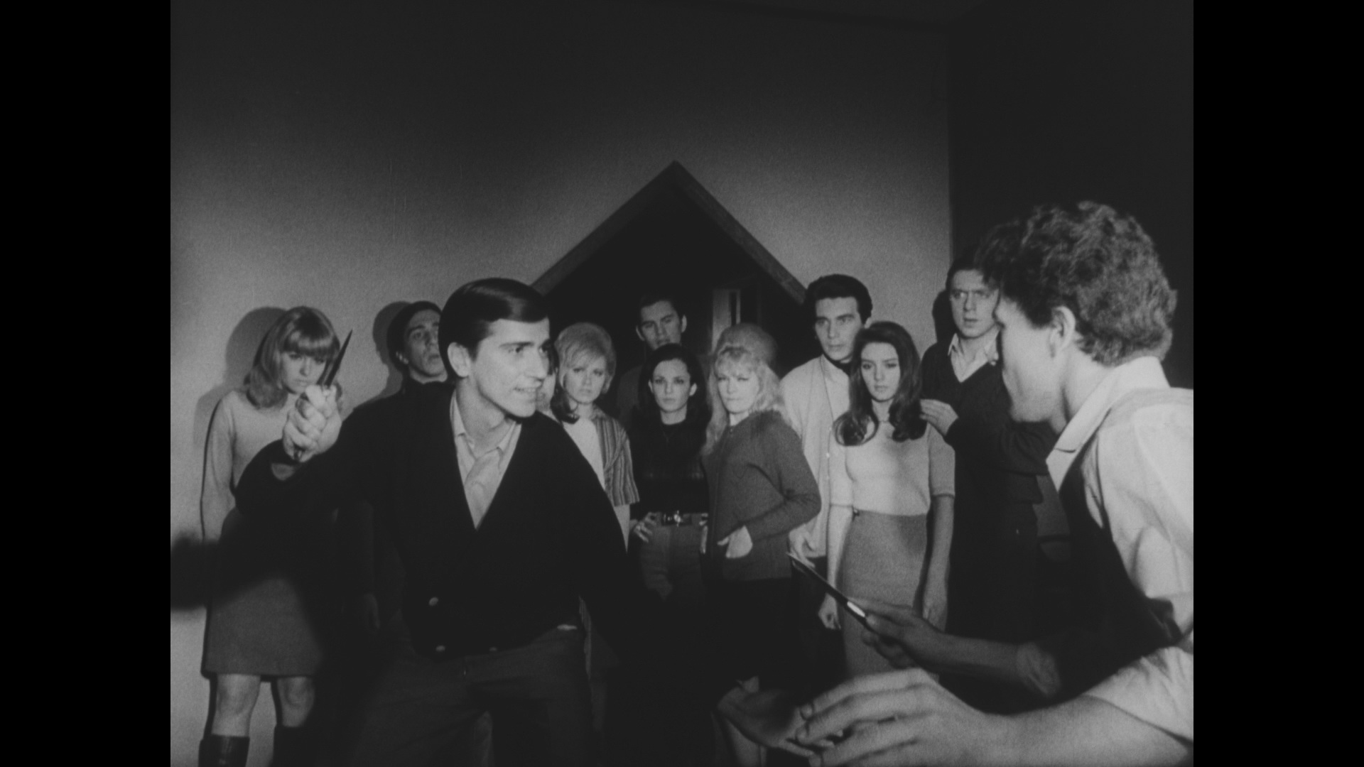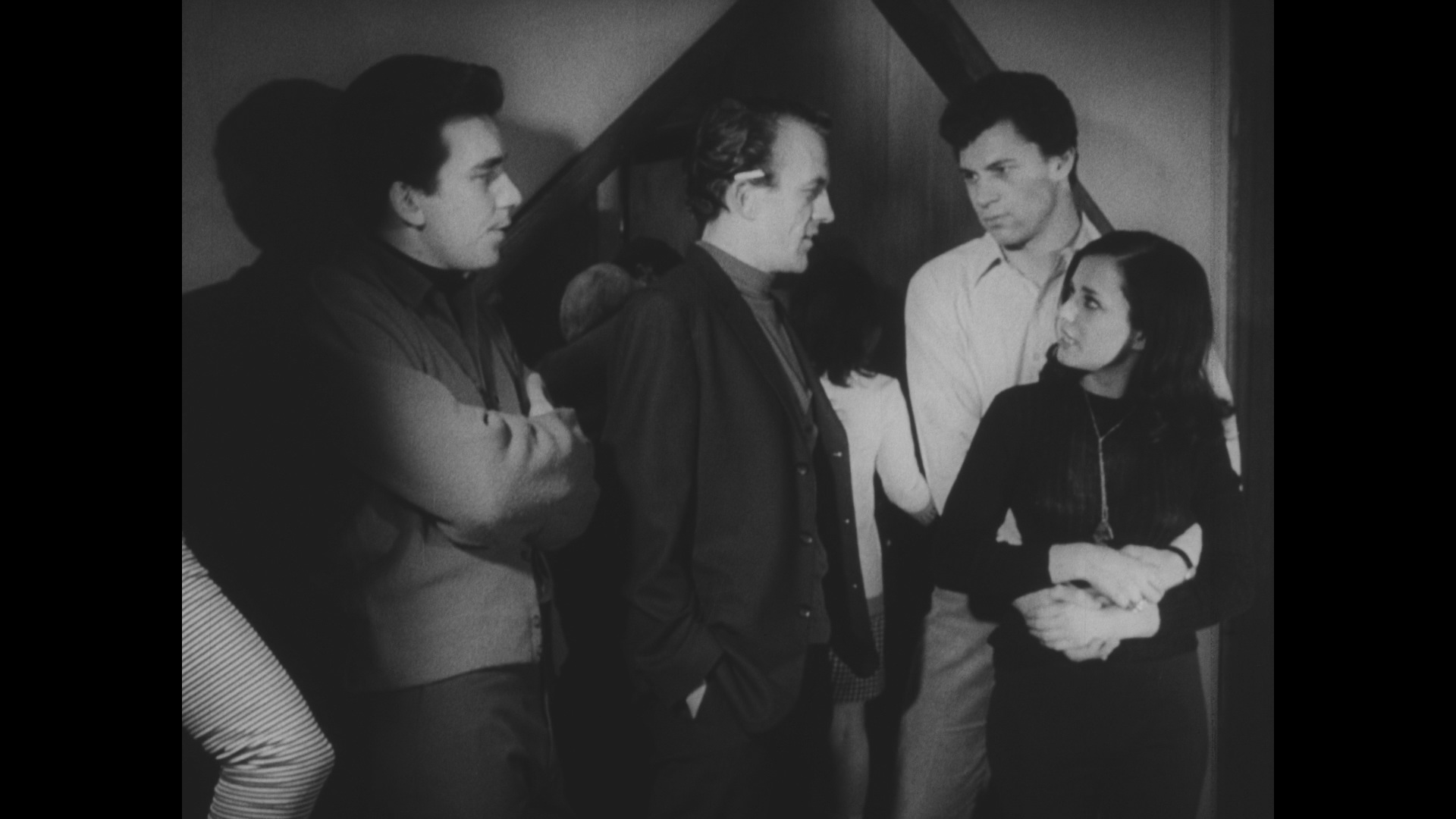 about the shooting locations and exploitation trends. She's spoken to a few of the actual actors from the film, too, which is fun to hear. This time to bonus co-feature here is 1959's The Rebel Set (71m18s ), a pretty standard jazzy crime film presented from a 16mm print. Later turned into an episode of Mystery Science Theater 3000, it hits all the necessities of the time including opening up at a beatnik club with a vigorous jazz flute player. That's where some guys are recruited to pull off an armored car heist that turns into a string of double crosses. Maybe the weirdest thing about this one is that it stars Edward Platt, who went on to star on Get Smart a few years later. It's modest but fun and twisty, again looking better than before here apart from funky black levels. You also get two shorts here, 1965's Christian propaganda film "Summer Decision?" (28m51s) about some surfer dudes figuring how what to do with their lives at camp (featuring Spider Baby's Beverly Washburn!), and 1960's "Teenage Diary" (29m21s), a familiar SWV Christian scare short about a high school couple dealing with an abusive parent who lands one of them in the hospital. Can the scripture show the way to dealing with a beatdown on the beach? Then you get a "Teenage Turmoil Trailer Reel" (12m45s) featuring Teenage Gang Debs, The Rebel Set, The Flaming Teenage, Four Boys and a Gun, The Cats, Teen-Age Strangler, and Damaged Goods. Petrucci returns for the insert booklet (which comes with a nifty sticker) to provide "Badass Babes, Depraved Delinquents, and Cycle Psychos - Sixties Style," an essay covering the joys of the soundtrack, the evolution of j.d. films, the state of exploitation in '66, the probable reason for the sleazy pre-credits sequence, the release history, and the emergence of cast member Sandra Kane decades after the fact. AGFA (Blu-ray)