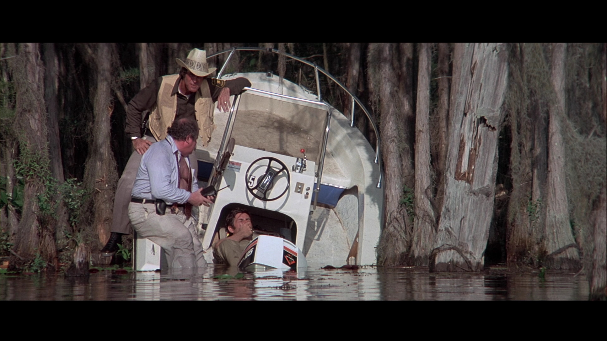 Both White Lightning and Gator were notoriously botched DVD releases from MGM, both stuck with cruddy full frame transfers that demolished the compositions of the second film in particular. Those eyesores were recycled in various double- and triple-feature combos for the bargain bin market, though flat letterboxed transfers popped up on TCM and later