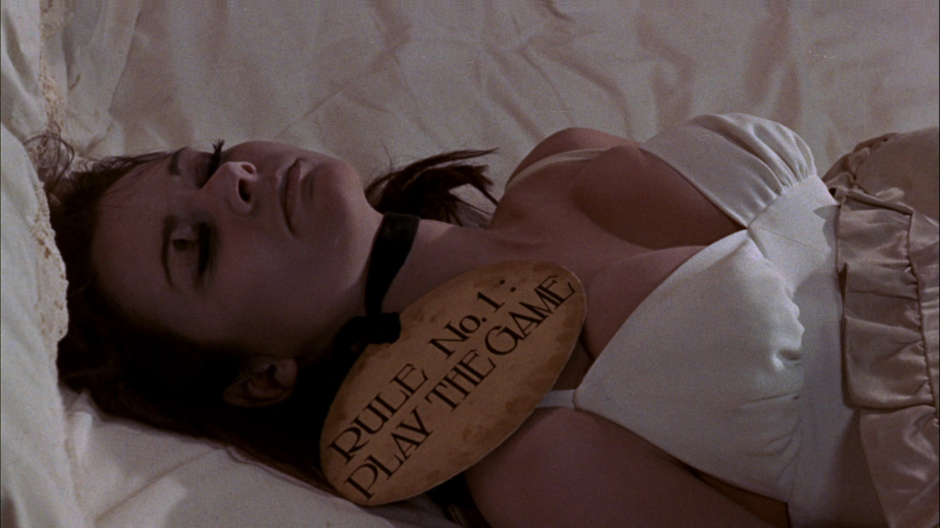 children’s clothing while playing juvenile but often fatal games with strangers they encounter. One afternoon at the zoo they befriend an ill-fated tramp who goes home with them and, distracted by Girly’s naughty schoolgirl charms, doesn’t realize their role playing might cost him his head. Their antics are overseen by their knitting-happy guardians, Mumsy (Dr. Terror’s House of Horrors’ Ursula Howells) and Nanny (10 Rillington Place’s Pat Heywood), who encourage the youngsters to handle any unruly new family members by sending them off to the angels. Enter their latest “New Friend” (The Stone Tape’s Michael Bryant), a particularly long-in-the-tooth gigolo whose latest patron (El Condor’s Hassall) runs afoul of Girly and Sonny, leaving the newcomer to upset the homicidal family order when he decides to have Girly to himself.