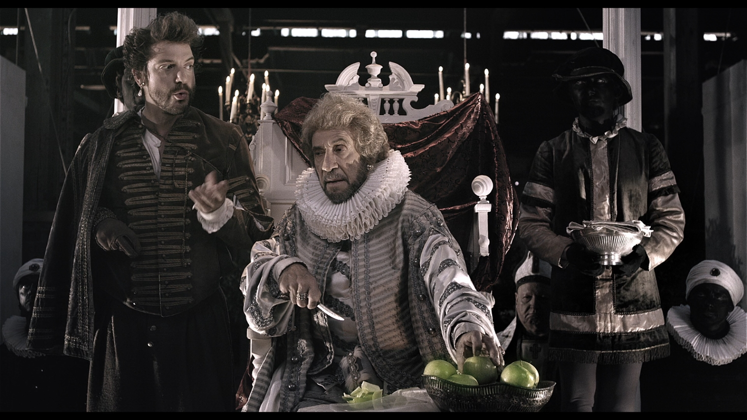 After that film marked a sort of return to form, Greenaway dabbled in more familiar territory with Goltzius and the Pelican Company, which manages to situate an Oscar winner (F. Murray Abraham) in the middle of a Chinese box narrative similar to his underrated play-versus-audience outrage, The Baby of Mâcon. In this case the audience is gathered to witness a series of performances enacting famous tales from the Old Testament, engineered by engraver and artist Hendrik Goltzius (Nasr) to persuade from funding from the wealthy Musgrave of Alsace (Abraham). Everyone is