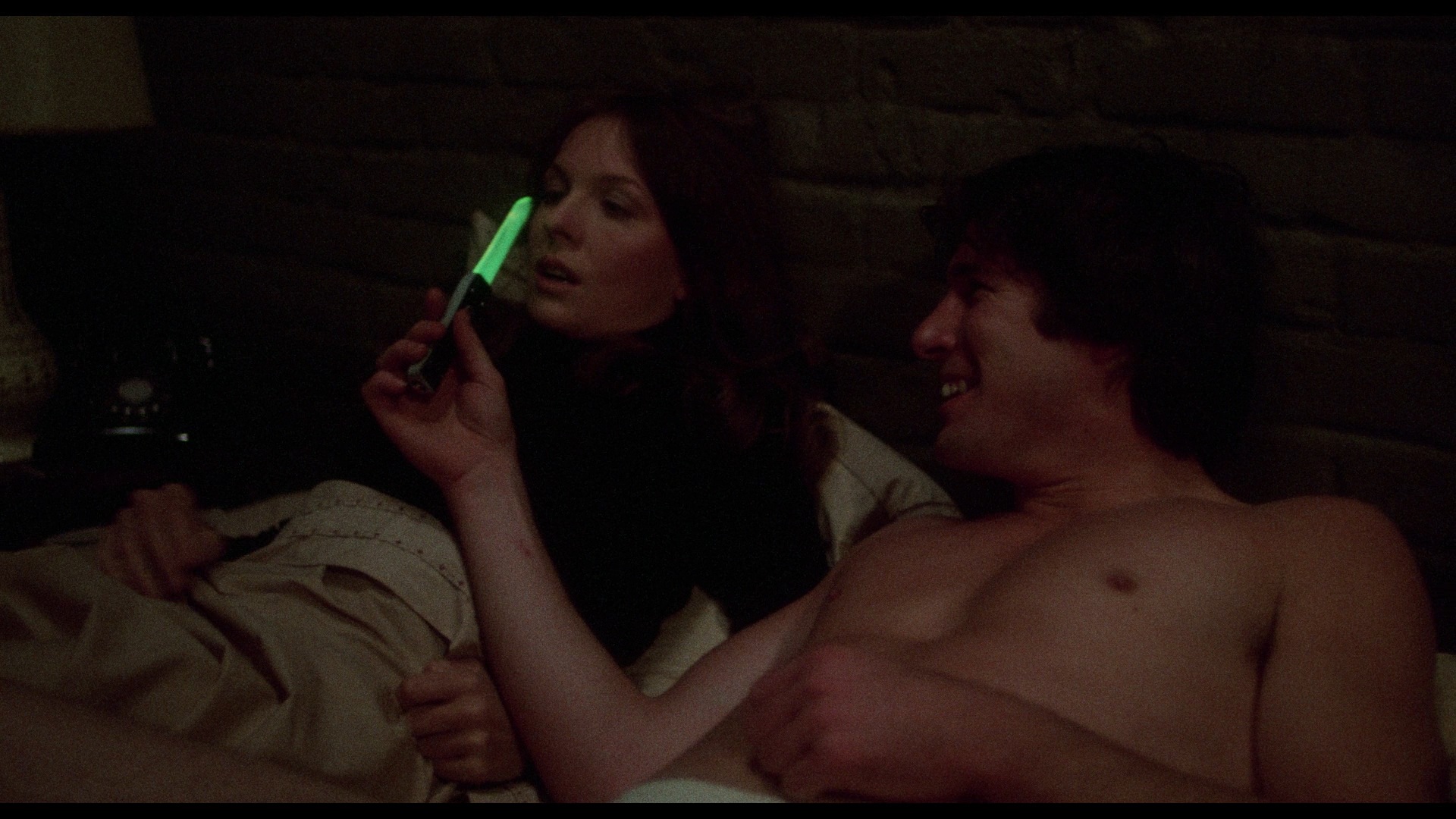 It should go without saying that the Vinegar Syndrome release is by far the best way to experience this film to date, with the HDR-compatible Dolby Vision presentation on the UHD looking very true to the heavily textured cinematography by the legendary William Fraker (who also shot Exorcist II: The Heretic the same year). Several scenes are intentionally dark and meant to play on a feeling being submerged in shadows, especially the two scenes with actor Julius Harris, and you can definitely make out a lot more here than anywhere else outside of a Looking for Mr. Goodbartheater. The DTS-HD MA 2.0 English mono track is quite punchy as well with the plentiful songs sounding great, especially the two uses of The O'Jays' "Back Stabbers." Optional English SDH subtitles are provided, and it's worth noting that the initial pressing had a flaw that caused the UHD to stop running on some players in Dolby Vision Looking for Mr. Goodbarplayback but a replacement program was quickly instituted. A terrific new audio commentary by Gillian Wallace Horvat pulls together a great deal of research from Richard Brooks' papers at The Academy's Margaret Herrick Library and sheds light on the development of the project including the adaptation changes, the roundabout creation of the opening photo montage, interpretations of the story's moral stance (or lack thereof), Keaton's career, and lots more, including a particularly potent brief anecdote at the end. In "First Comes the Word: Richard Brooks and the Making of Looking for Mr. Goodbar (23m32s), Brooks biographer Douglass K. Daniel discusses the film in the context of the director's career, explains his own process of encountering and processing it, and shares some stories about the production including a funny bit about how Brooks communicated the intended look to Frayker during preproduction. A WFMT radio interview with Rossner by Studs Terkel (13m4s) from 1976 covers the state of singles bar culture, the author's perspective on her main character, the circumstances of the real-life inspiration, and a fascinating bit of insight about how the Vietnam War informed this cultural shift. The seven-part "Defining Autonomy: The Trial of Looking for Mr. Goodbar" (30m41s) is a thorough, spoken piece by Brent Cowley covering the intricate saga of trial following the film’s theatrical release in Provo, Utah, which seems completely absurd by any metric. The evocative, photo-driven theatrical trailer is also included along with three radio spots, while the limited edition packaging comes with a 40-page booklet featuring some very worthwhile essays by Marya E. Gates, Marc Edward Heuck, Elizabeth Purchell, and Jourdain Searles, covering everything from the film's place in second-wave feminism to its correlation between society's repressive treatment of gay and female members that plays a major role in the finale.