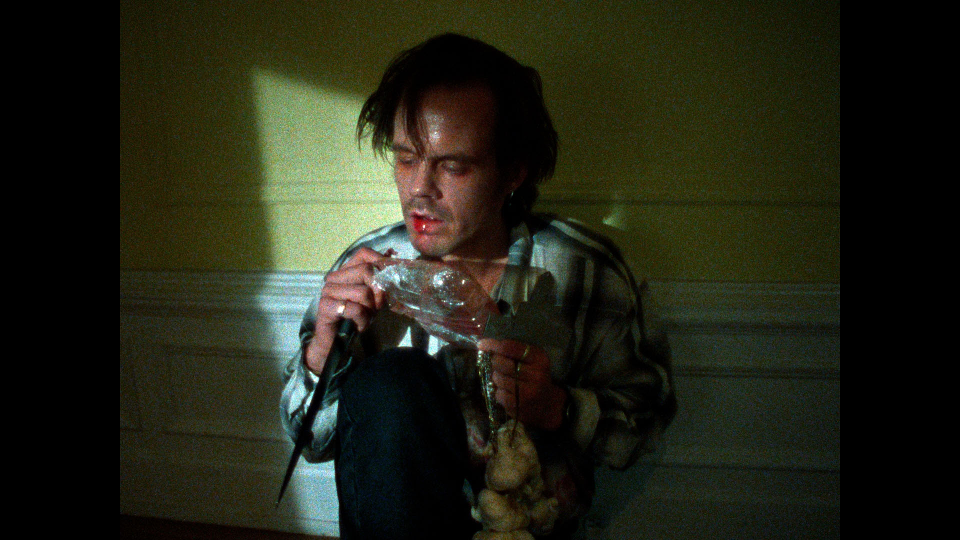 Also in the Vinegar Syndrome set making its UHD debut with a Blu-ray as well is Fessenden's second feature, the far more widely seen Habit, his take on vampirism made in 1994 but not really released until 1996 after some festival play. Again shot in 16mm and based on his student film (whose year lands somewhere between 1979 and 1982), it starts off on Halloween in New York City as struggling alcoholic Sam (Fessenden himself) is wandering in something of a daze after the death of his architect father and being dumped by his girlfriend. At a party that night he meets Anna (Snaider), who approaches him after he leaves and initiates a dark, tortured, sexual relationship as she infects him with a need to consume blood. While his ex and friends become concerned, Sam is consumed with his transformation and tries to shake the ghosts that are haunting him.