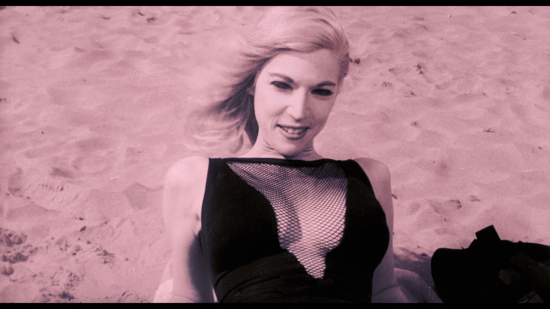obscuring the copyright info for some reason, and full-color versions of a couple of short trip sequences with added digital psychedelic effects. (The B&W one just adds a light color tone instead.) A "Behind The Scenes Producer Commentary" (7m42s) is actually an SD video interview with producer Robert Weinbach about the real-life inspiration for the film (involving the murder of an Ibiza antiques dealer), the fundraising he conducted in St. Louis, his experiences with William Burroughs and the beat counterculture, his own encounter with LSD at a restaurant, and a run-in with Mick Jagger and Keith Richards; a one-minute gallery with music is also tacked on at the end. "50’s LSD Experiments" (10m27s) is an archival educational short about medical experiments with lysergic acid, pulled from a dupey VHS source but nice to have here for posterity. " Take An Acid Trip With Bosch and Bruegels" (6m25s) is an odd tapestry of animated paintings by the two legendary artists, accompanied by a psychedelic soundscape On a similar note, "Fractals Meet Bosch" (3m28s) by Peter Ludwig Wegener uses digital morphing techniques and spacey jazz music to turn The Garden of Earthly Delights into a video trip of its own. That same technique goes modern with "Pouff’s Grocery Trip" (2m53s), which looks like a trip through a Toys 'R' Us store on acid. Finally an image gallery (1m27s) collates a number of promotional B&W stills. The first pressing (1,000 units) also comes with a full color slipcover designed by Hauntlove and an insert booklet reproducing the original press book.Tinted Version