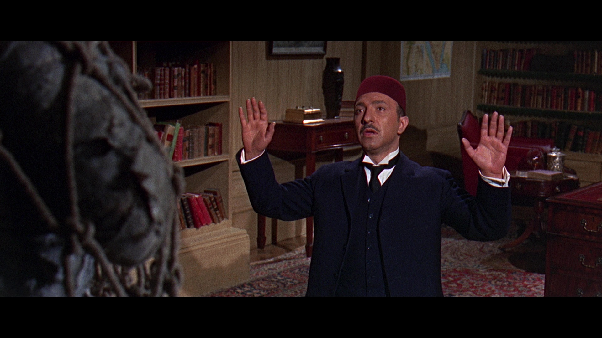 Though it probably hasn't ever The Curse of the Mummy's Tombappeared at the top of any Hammer fan's list of favorites, Curse has been a reliable TV fixture for decades and has shown a great deal of endurance over the years. It's basically middle tier Hammer, perfectly functional and filled with enough grisly bits (including a pretty downbeat ending) to leave just enough of an impression to stick in your head for a little while. The first widescreen DVD appeared in that aforementioned Sony collection, followed by the Mill Creek set and a Blu-ray double feature crammed on a disc with The Revenge of Frankenstein (again looking okay considering but with lossy audio). The Indicator blasts that prior Blu-ray out of the water with a vastly superior presentation featuring much more robust colors, far more image info in the frame, and far less element damage -- not to mention more breathing room on the BD-50 disc and lossless audio, which makes a The Curse of the Mummy's Tombdifference in this case as the soundtrack is actually quite impactful at times.
