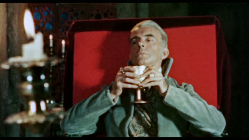 string of incredibly awful public domain video editions. The undeniable highlight comes just a bit past the one-hour mark when our hero sees an arm emerging through a stone wall and finds himself confronted with a truly creepy surprise from the grave; had the entire film sustained this kind of morbid intensity, it would definitely be better known. The idea of de Sade's madness manifesting itself as a flamboyant "ghost" (Morgan) is an interesting one as well, leaving the viewer unsure exactly what's going on well into the running time. Director Pat Boyette was