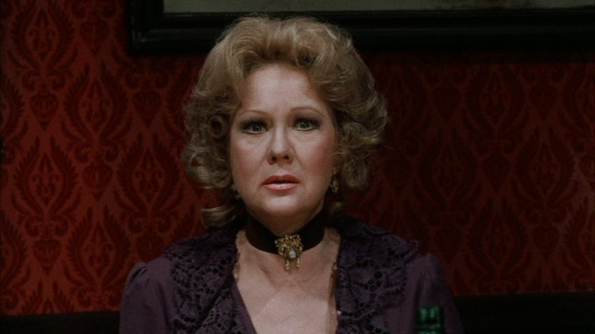 Taking a page from that hoary “executed witch comes back from the dead to avenge herself on the people who wronged her” formula, Haunted at least begins with a novel twist by making its doomed avenger a Native American woman, Abanaki (played by Virgin Witch’s Michelle). The only witness to a gold-stealing scheme by an influential Civil War officer and priest in town, she’s convicted of trumped-up charges and sent off topless and bound at the wrists atop a horse into the wilderness to die (presumably). However, as the opening text crawl, the yowling Billy Vera theme song (“Indian Woman”), and numerous slabs of exposition repeatedly inform us, she somehow lingers in the territory centuries later to… uh… well, supposedly possess someone and maybe uncover the gold or kill a few people, though none of those things actually happen. Instead we’re embroiled in the incredibly mundane family troubles at a dying tourist trap ranch where brothers Patrick (Death Car on the Freeway’s Negele) and Russ (Silent Scream’s Reardon) have to deal with their oddly glamorous, blind, and widowed mother (Mayo) and her sullen property manager and sometimes lover, Andrew (Ray). Another bone of contention is a telephone booth installed in the graveyard(!) on their property, which seems like an odd cash-grab scheme for a place no one visits anyway. Then a pretty British actress named Jennifer (Michelle again) on her way to Hollywood stops by and starts a fling with Patrick, but her resemblance to the legendary Abanaki kicks off an incredibly muted chain of events with Andrew starting to go off the deep end.