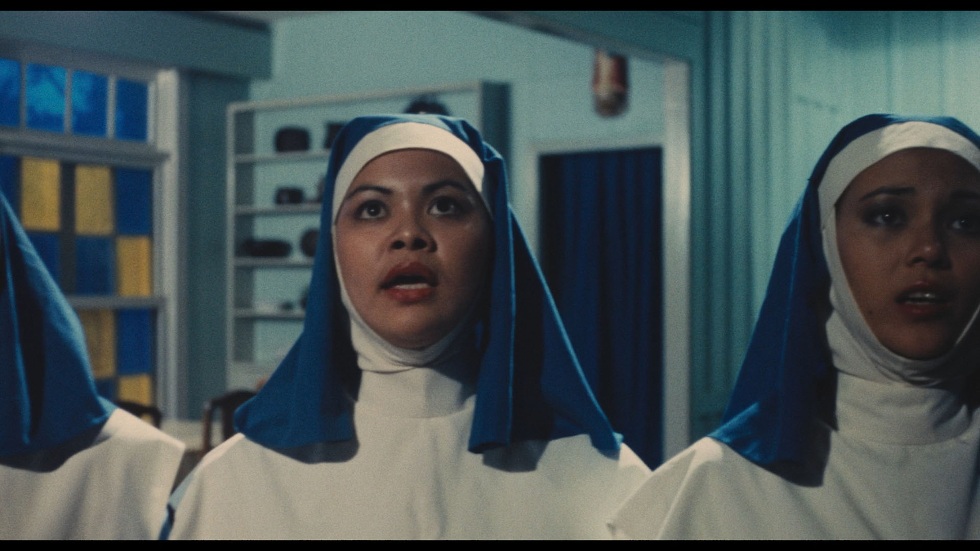rock musical absurdist comedy complete with a conspiracy theory involving Japanese crime lords and phony nuns. The film is one of the most outrageous features from filmmaker Mike De Leon, who turned out many films for the studio LVN Pictures founded by his grandmother. His output defies easy genre classifications and has undergone major restorations in recent years, even leading to a 2022 retrospective at MoMA. Several of his titles have been available on and off streaming for purchase or rental, but this 2023 Blu-ray release from Kani marks the first physical media edition of what would be a substantial cult favorite if enough people watched it.