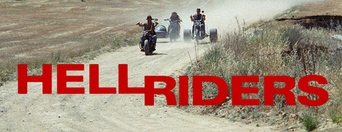 horror circles for the insane backwoods cheapie Don't Go in the Woods, director James Bryan has had a truly staggering exploitation career spanning everything from action to goofball comedy to erotica. Some of his most astounding achievements were created in tandem with Renee Harmon, resulting in titles like Frozen Scream, Jungle Trap, Run Coyote Run, Boogievision, Lady Streetfighter, and The Executioner, Part II. To that list you can add Hell Riders, a very trashy biker opus that belatedly rode the wave of grungy '70s hog-wild films like The Peace Killers and Satan's Sadists. Except crazier.