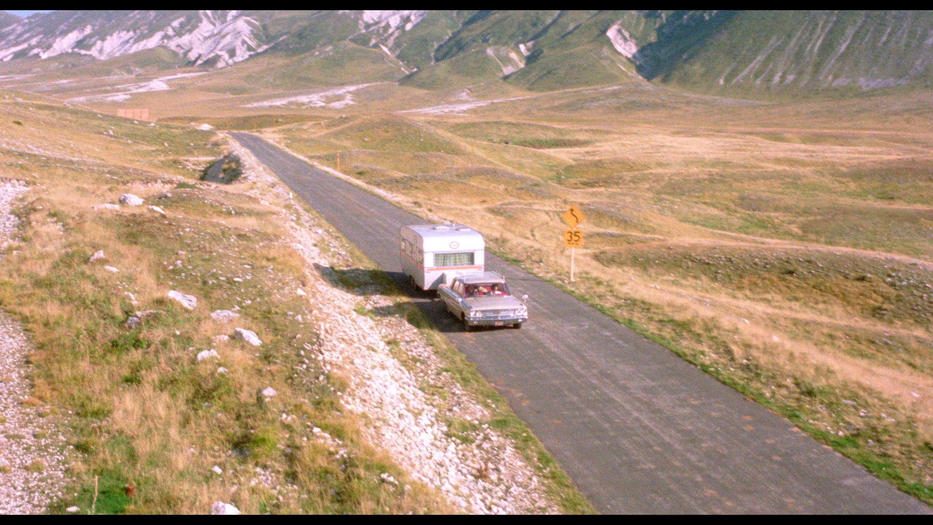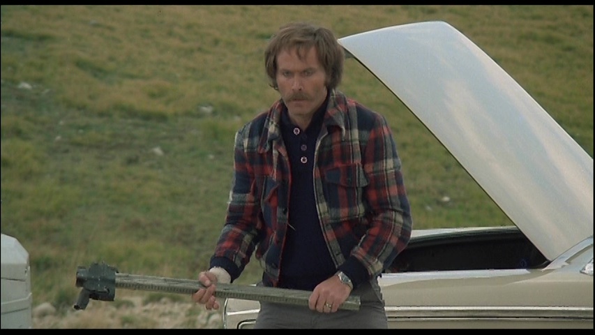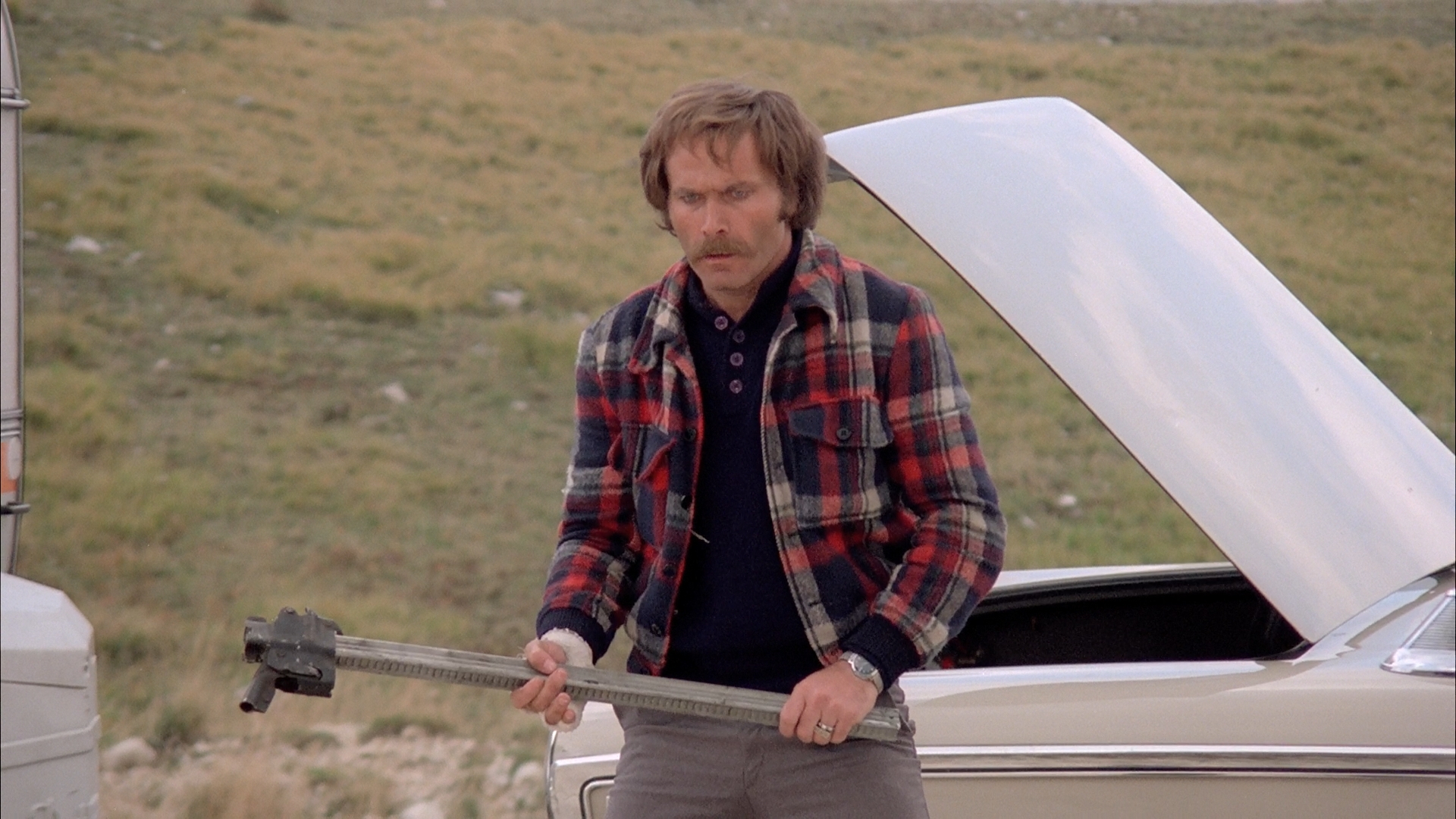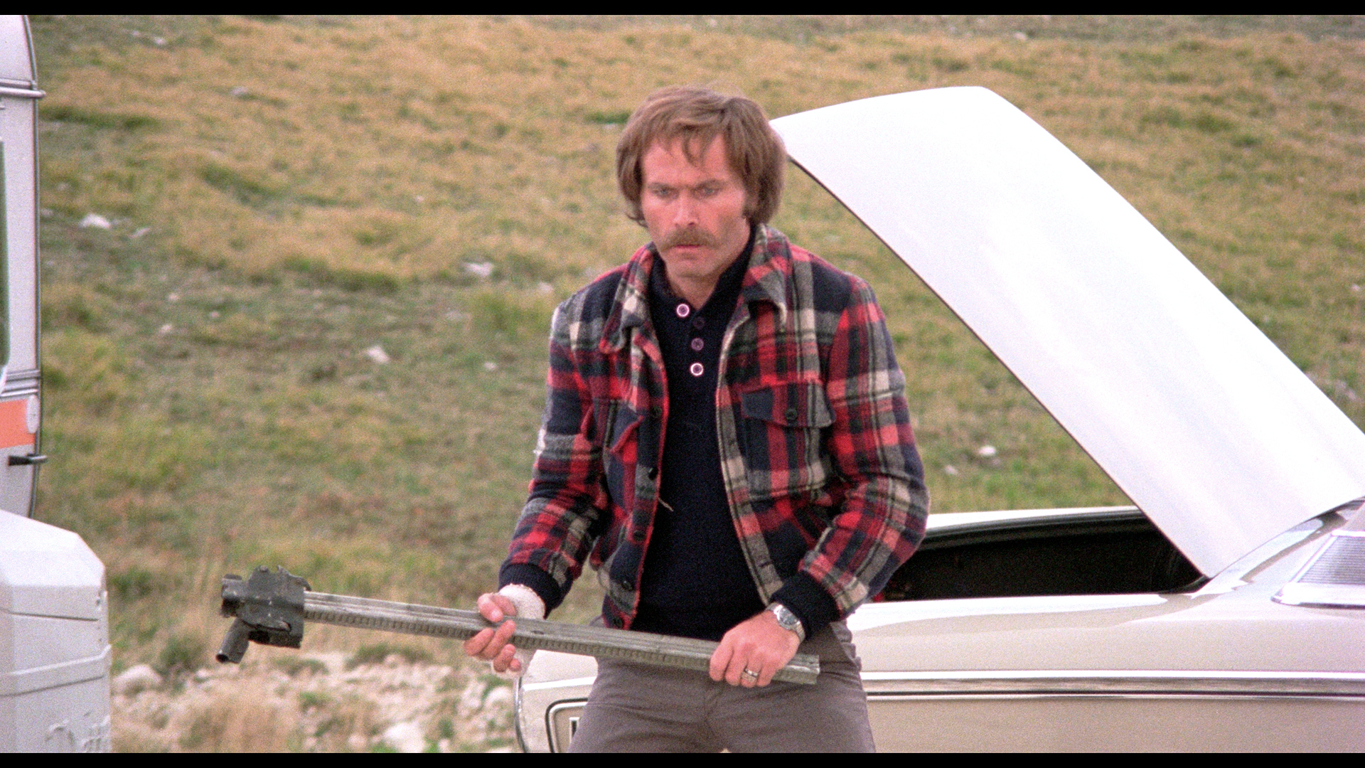 While hauling their trailer across the Italian-ish California desert to L.A., abusive and foul-tempered reporter Walter (Nero) and his wife, Eve (Cléry), can barely stop hurling barbs at each other for two minutes. After stopping for the night to socialize with some musically-challenged society dropouts, they decide to relieve their boredom by picking up a hitchhiker, Adam (Hess). When the new arrival turns nasty, Walter ejects him from the car and gets into a fistfight that ends with Adam brandishing a gun. As it turns out, he's an unhinged robber on the run with two million dollars, and he needs them to get him to civilization and avoid the two