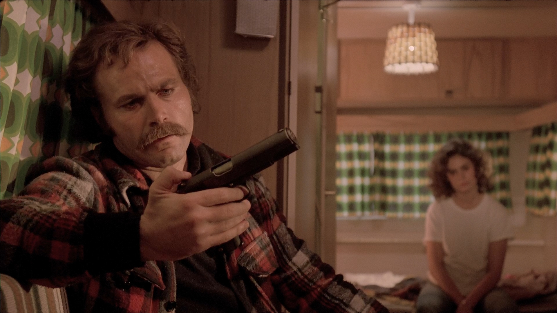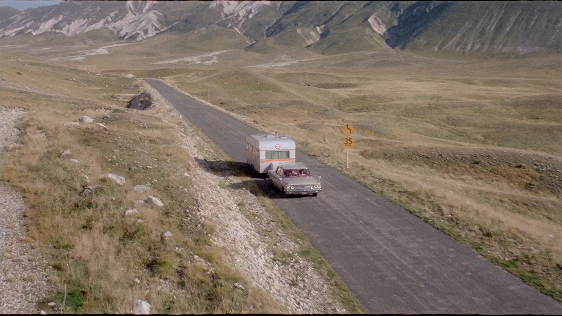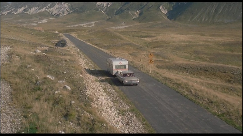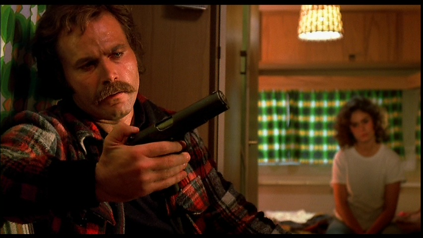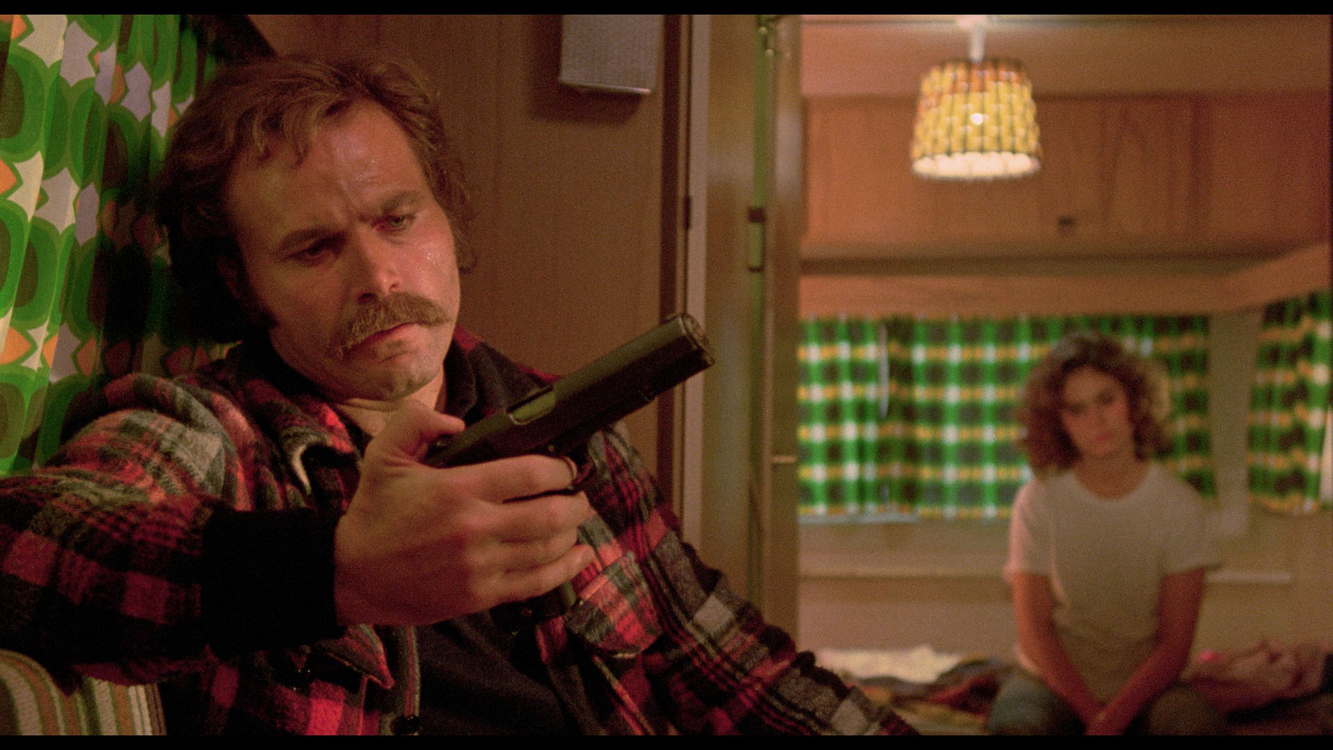 While hauling their trailer across the Italian-ish California desert to L.A., abusive and foul-tempered reporter Walter (Nero) and his wife, Eve (Cléry), can barely stop hurling barbs at each other for two minutes. After stopping for the night to socialize with some musically-challenged society dropouts, they decide to relieve their boredom by picking up a hitchhiker, Adam (Hess). When the new arrival turns nasty, Walter ejects him from the car and gets into a fistfight that ends with Adam brandishing a gun. As it turns out, he's an unhinged robber on the run with two million dollars, and he needs them to get him to civilization and avoid the two