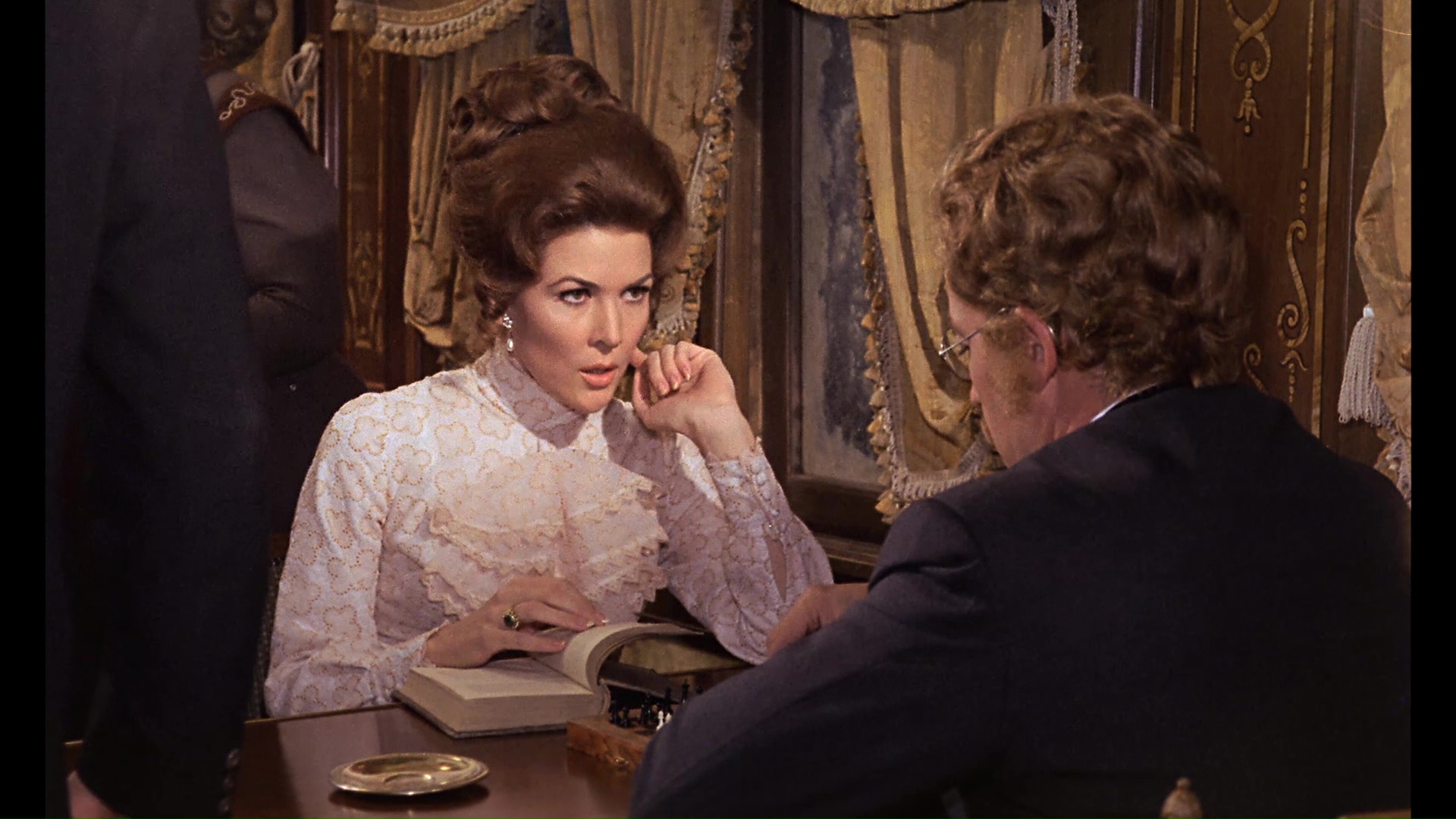 In 2019, Arrow Video offered the film with its first fresh scan in several years, and the difference is quite a significant improvement with much finer film grain, added detail, and a more natural color shift away from the orange cast on the earlier Blu-rays (closer to the cooler look on the Image DVD). The train interiors in particular look much richer with fabrics and glass patterns registering more strongly, and the dark scenes are more atmospheric by a fair margin. (Frame grabs in the body of this review are from the Arrow; comparison ones can be seen below.) The usual English LPCM track is included here, sounding quite nice, with optional English SDH subtitles. The master for this 2K-sourced presentation features the English opening credits and Spanish ones at the end. Ported over from the Severin disc are the "Murder on the Trans-Siberian Express," "Notes from the Blacklist," and "Telly and Me" featurettes, the Alexander intro (playable before the film), and the theatrical trailer, so hold on to the older one if you still want the Cushing audio interview. A new audio commentary with Stephen Jones and Kim Newman takes an appreciative tour through the making of this film including the people behind it, the status of Spanish horror cinema at the time, the differences in Lee and Cushing's acting approaches, and the ambitious, rich nature of the film somewhat camouflaged by its most familiar English title. "Ticket to Die" with screenwriter Steve Haberman (8m31s) examines the film in the context of '70s horror films in the wake of Hammer and as part of Martin's filmography, with some fun thoughts on the contrasting functions and styles of the three leading men as well as the clever use of only two train cars for the shoot. Then filmmaker Ted Newsom turns up for "Night Train to Nowhere" (15m8s) focusing on the role of Gordon, whom he knew, including his career up to this film, the challenges of keeping Cushing involved after the death of his wife, the challenge of booking indie films, and the narrative debt to "Who Goes There?" The package also comes with a reversible sleeve featuring a new design by Graham Humphreys and, in the first pressing only, an insert booklet with liner notes by Adam Scovell.Updated review on January 19, 2019