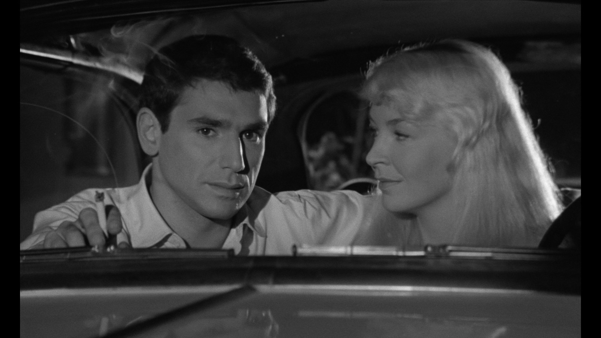 the prior film) with Vlady returning to star as well. Here he plays Pierre, a drifter who becomes fixated with tracking down a mysterious unclad blonde woman with an obscured face who ordered him at gunpoint to get out and tried to kill him after sharing a car ride. The trail leads to reclusive sisters Hélène (Cartouche's Versois) and wheelchair-bound Eva (Vlady), with whom he becomes entangled in a strange psychological game as a vengeful but libidinous Pierre tries to figure out which of the two blondes he met on that dark road. Compared to the same year's Vertigo on multiple occasions (though Hitchcock probably wouldn't have settled for the really cheap wig Vlady wears), this one also plays to some extent like a forerunner to the later What Ever Happened to Baby Jane with its highly dysfunctional sisters with varying degrees of mobility. Again it's all shot extremely well,