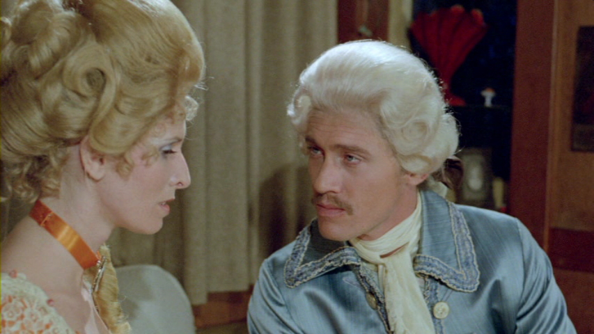 a glimpse of Donald Sutherland! Here Casanova ends up in a follow up duel from that one in the first film, which ends up turning into a threesome with his mortally wounded opponent (a girl in drag) and a female gypsy. That tryst in turn breeds a son, Don Juan (one timer Bjorn Beck), who is adopted by a Spanish noble (Tobalina) and becomes another famous lover and swordsman. He also inherits that pivotal aphrodisiac,