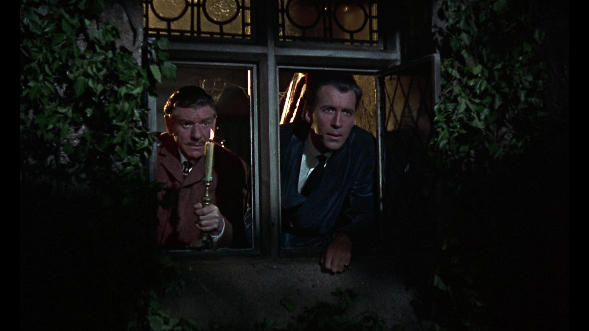 This second feature film version of the most famous Sherlock Holmes mystery came as something of a shock after the iconic Basil Rathbone and Nigel Bruce adventures beloved both before and after World War II. Here the sleuth was revived courtesy of Hammer Film Productions at the start of its run of horror masterpieces, helmed by the brilliant Terence Fisher just after the one-two punch of Horror of Dracula and The Revenge of Frankenstein (and shot the same year he made The Mummy, The Stranglers of Bombay, and The Man Who Could Cheat Death). That's an incredible streak by any standard, and his take on the famous puzzle about murder and mayhem on the moors fits solidly with the colorful, brash aesthetic he was developing with his more overt monster yarns at the time. In fact, this film significantly lays out the groundwork for the visual and narrative experiments he would try with two more masterpieces right after it, Brides of Dracula and particularly The Curse of the Werewolf, which explicitly picks up on motifs and story structure found here.