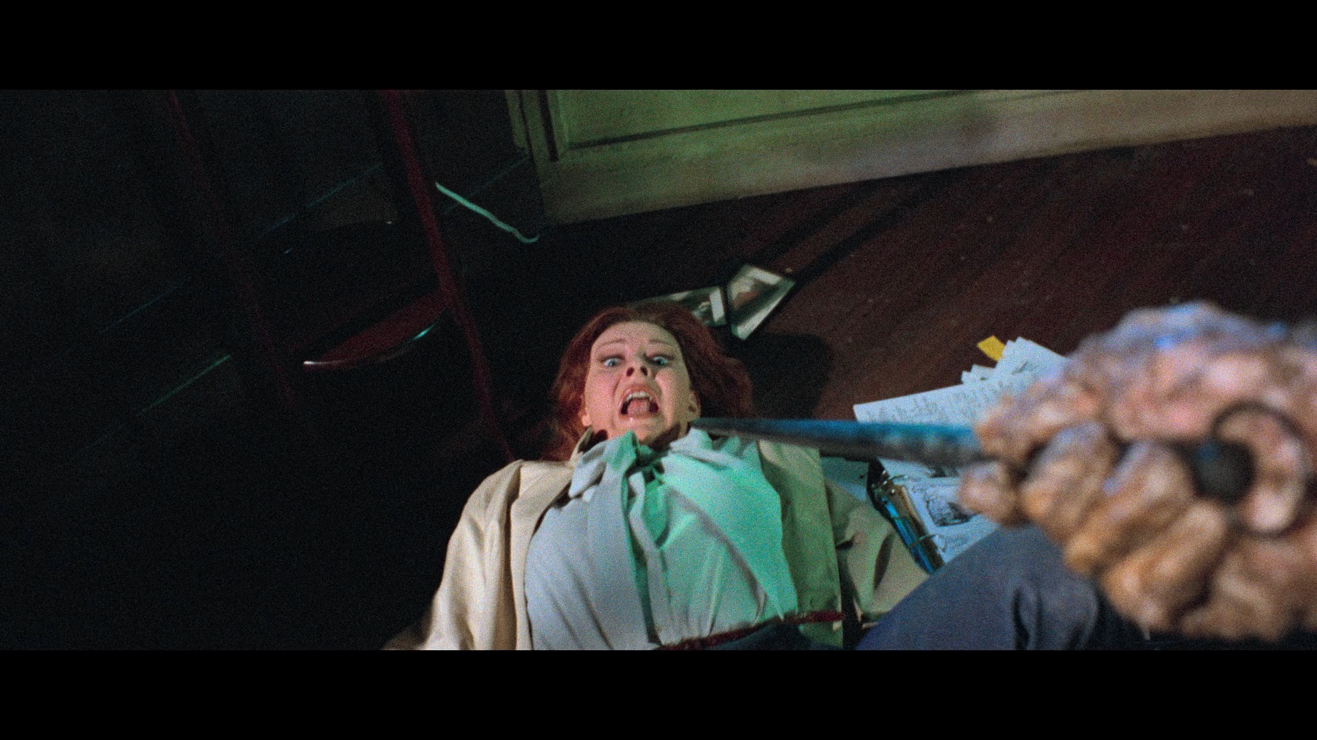 Some of the surround effects really work nicely here, especially when it comes to the screams and clomping effects emanating from the basement or the upper floor of the house. The Italian mono track is also included (DTS-HD MA 1.0), and optional subtitles are present in English, English SDH, Spanish, and French. A new audio commentary by Troy