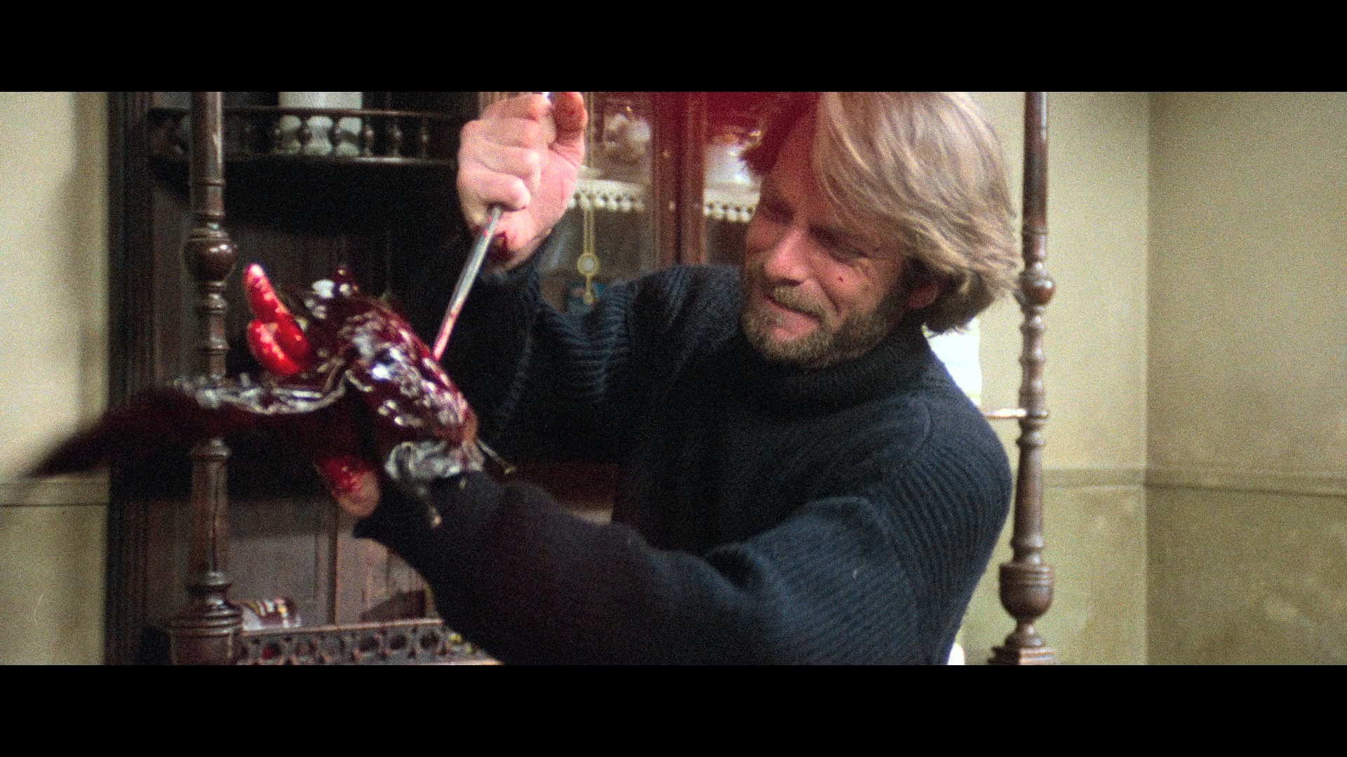 Not surprisingly, Blue Underground added House to its slate of Fulci titles on Blu-ray and thankfully decided to go all out with supplement this time around, as the film easily deserves it. It should go without saying that the new HD transfer is a few notches above what its standard def counterparts could offer, and for the most part, it looks okay but leaves a lot of room for improvement; the nocturnal scenes (which comprise pretty much the entire second half of the film) look clear with much more depth than before. On the other hand, the bright daylight scenes, while colorful, suffer from that funky 10th Victim syndrome with some splotchy-looking grain and an odd lack of detail in some shots. Again this only counts for a minor percentage of the running time, but it's definitely there for anyone who's been bugged by it on some past Italy-sourced HD transfers. The English audio (again in moderate 2.0 stereo or original mono) sounds fine, with optional English SDH subtitles included. At last the Italian audio has been included as well (in mono), and it's amusing to note that in this version as well, Bob is unconvincingly voiced by an adult female. What's most interesting is the fact that the Italian track is much, much lighter on dialogue than the English version, which had a lot of extra lines added with people calling to each other and offering additional superfluous comments when walking down hallways or turning away from the camera; instead, the Italian track soaks in the ambiance of the music and sound effects far more subtly and makes for a markedly different viewing experience. Unfortunately the English subs, while welcome, aren't offering in another option with a translation of the Italian dialogue (something their Zombie disc got right, as mentioned above). Much of the Italian dialogue has a completely different meaning from that of the English version