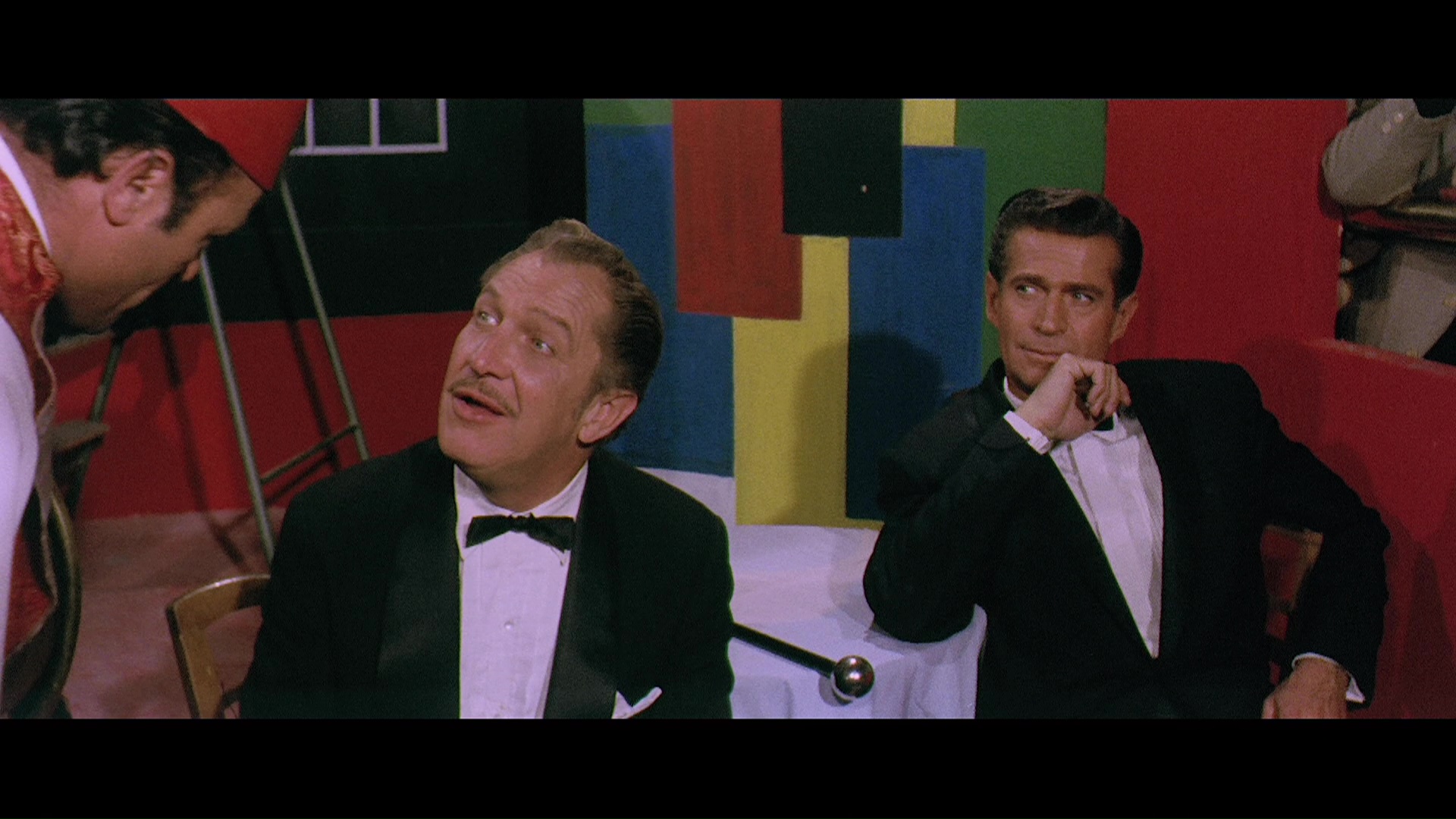 Things start out with a bang as Price is seen as well-dressed magician Felix Manderville overseeing the delivery of an ornate coffin into his palatial home, only for a screaming Diane (Rohm) to burst out of the casket. As it turns out, Felix and his wife, Rebecca (Hyer, fresh off of Picture Mommy Dead), use their popular nightclub magic act as a front for their female kidnapping and prostitution ring, with women unwittingly hypnotized and delivered into their clutches.