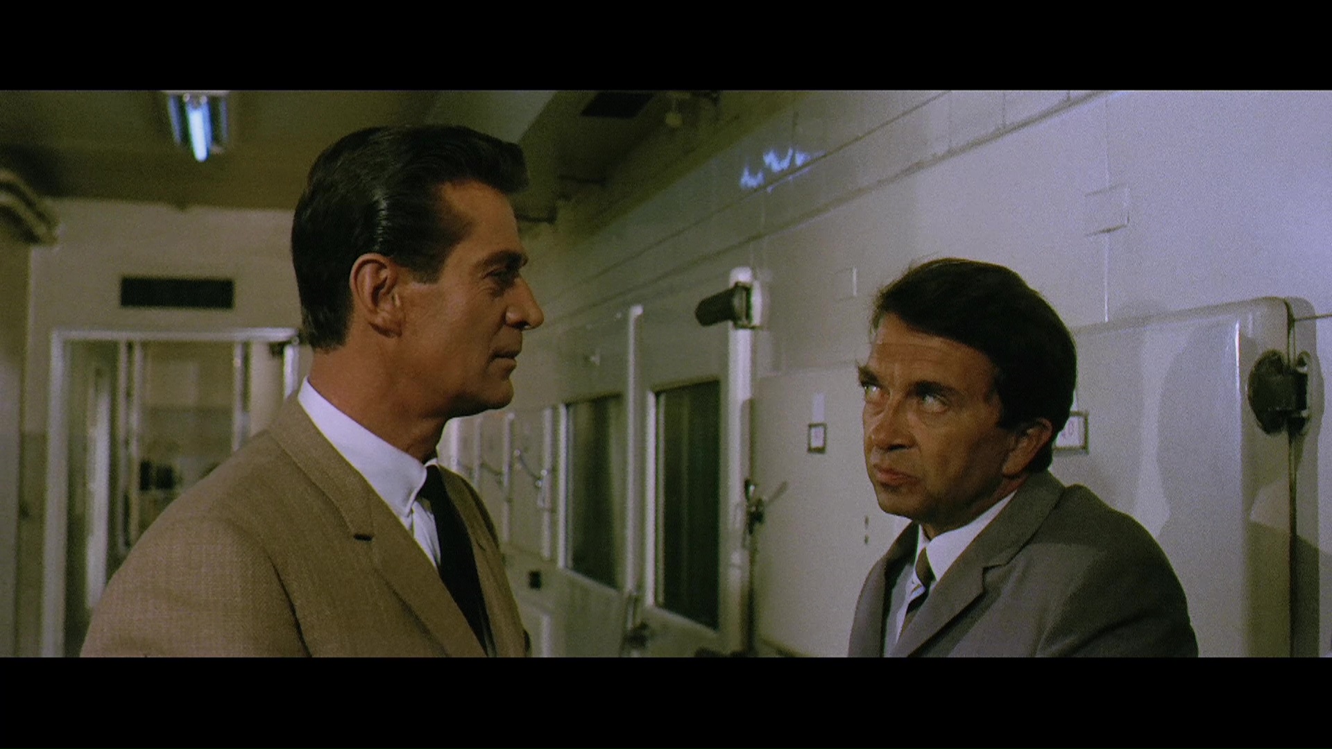across the board as it features an infinitely more detailed, colorful presentation that adds a classy veneer to visuals that once seemed crude and amateurish. The vibrant hues here are often very impressive, and anyone who's run into this film before will probably be rubbing their eyes at how good it looks here. The original English audio sounds fine in the DTS-MA mono version found here, and while a good version of the trailer has yet to turn up, you do get bonus trailers for Madhouse, Tales of Terror, and More Dead Than Alive. More substantially, the big extra here is a new audio commentary by regular Price commentator David Del Valle and director David DeCoteau, who talk about the pertinent production facts (such as the early idea to present this as a Sax Rohmer tale) and get pretty dishy as they leave you with the impression that almost every single person involved with the film was either gay or had some sordid secret to hide. Of course the most famous example is Nader, a leading man outed as a sacrifice to the tabloids instead of Rock Hudson who was in the midst of playing Jerry Cotten in the popular German spy series when he made this film. Of course, he also went on to pen the breakthrough 1978 sci-fi gay novel Chrome, which would make for a pretty crazy film someday if anyone had to nerve to tackle it.