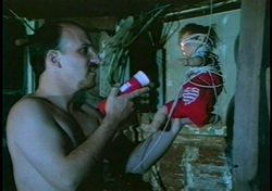 Wildly erratic, the transfer for The House that Screamed depends entirely on the lighting used from scene to scene. The opening sequence, a wildly gratuitous shower scene followed by a hamfisted crawl explaining the role of ghosts in the year 2000, does not bode well thanks to an abundance of noise and grain. Luckily the video quality smooths out somewhat afterwards, though the film never looks really polished or slick. It's at least watchable, and the stereo sound is well rendered despite some occasionally muffled dialogue. The DVD extras run almost as long as the feature itself, while the Polonias turn up for a commentary track as well. The discussion is fairly dry, explaining why certain elements were filmed and included (with lip service given to the obligatory nude scenes). Trailers include one for this film, two alternate spots for the sequel (Hellgate), and one for the Polonias' Dweller. Then we get to the real meat of the disc: an 18-minute "making of" documentary consisting mainly of talking heads (Dennis and the Polinias) discussing the film, a 14-minute reel of raw footage from the last day of shooting, and more questionably, a 15-minute tour of the house that could have probably been wrapped up in about a third of the time. The first two featurettes are quite interesting, however, and Dennis in particular turns out to have some interesting observations about the filming and his character. Last up is a still gallery and a blooper reel (mostly clowing around and outtakes) accompanied by music snippets.