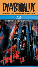 first issued on DVD from Elite Entertainment in 2001. The anamorphic transfer looked fine, and it was a pretty solid stab at the time complete with a VHS promo trailer, a TV spot, a still gallery, and an okay solo audio commentary by Mora that points out lots of little in-jokes and takes a self-deprecating approach to the whole thing. A terrible transfer was later put out as a standalone from Timeless and then in 2010 from the same company on one of the very worst, most disappointing Blu-rays of all time, a cruddy triple header of this title, Howling V: The Rebirth, and Howling VI: The Freaks, all taken from shoddy VHS masters.