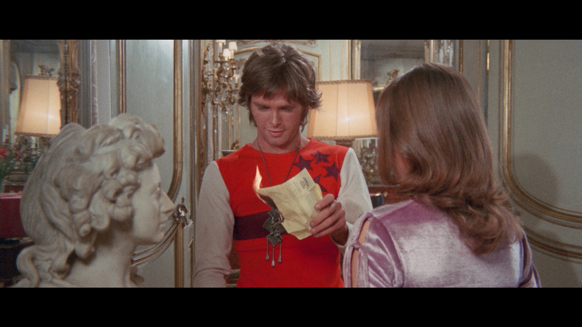 DTS-HD MA mono options include the full English track (which matches the vocal performances of the three leads, even if they were dubbed later) and the Italian track with optional, correctly translated English subtitles; both sound excellent. An audio commentary features yours truly and Troy Howarth chatting about the film, so that obviously can't be evaluated here but will hopefully be of value to listeners. In the Freak-o-Rama featurette "Porn Smugglers" (23m44s), the late Lenzi talks about the evolution of the film including his decision to cast Muti, his social and professional connections to Ponti, the original edict to use Baker in the role that went to Papas, and his dissatisfaction with the pornography angle of the story. Also included are the very rare original Italian trailer (with English subtitles) and four very brief "X-rated" inserts for the demands of international consumption including an alternate shot of hardcore photography and a gynecological flash of Muti's body double. A red case limited edition was also available featuring the same disc contents but also adding excellent, very informative new liner notes by Roberto Curti about the project's evolution.