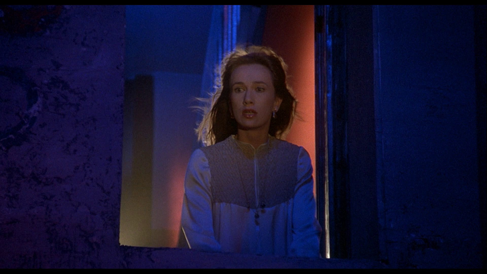 Fortunately any debate between the DVDs can be set aside in light of the film's not-surprising upgrade to Blu-ray early in the format's history. First out of the gate was Arrow's region-free Blu-ray release in the UK, which happens to be the first time it's ever been uncut there as well. The image quality is simply stunning; you've never seen Inferno like this in a home theater before. Countless little touches pop out in nearly every shot, from quirky details in the production design to expressive splashes of color in the background. After watching it under conditions like this, one could easily argue that this may be the most beautifully shot horror film ever made. English audio is presented in both the original Dolby Stereo track (same as usual) and a 5.1 DTS HD version that features stronger separation for the music score and, most interestingly, much clearer representations of several background lines of dialogue that are now fully intelligible, including some paranoid mumblings by the other apartment dwellers, the evil hidden voice in the Roman library, and the cops shouting orders to each other during the climactic blaze. The mono Italian track sounds very brash and shrill in comparison, but it's an interesting variation and worth watching as some of the dialogue (especially Kazanian's) is delivered with an entirely different tone and meaning. The English Infernosubtitles can either be played as literal dubtitles or a much more accurate, interesting translation from the Italian dialogue. Some have noted that there may be some noise reduction applied here, but if so, it's still a ravishing appearance; more on that below. Inferno